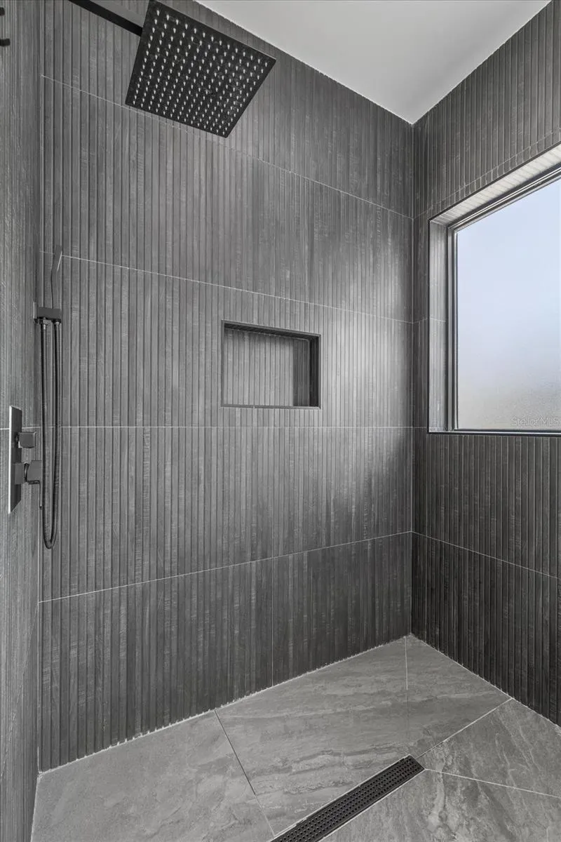 The primary suite is located on the main level and offers a private terrace, a custom walk-in closet, and a spa-style bath with a soaking tub, a 10 foot frameless glass shower, slate flooring, and floor-to-ceiling tile. Upstairs are 3 additional ensuite bedrooms, each with large walk-in closets, plus a full laundry room for convenience.