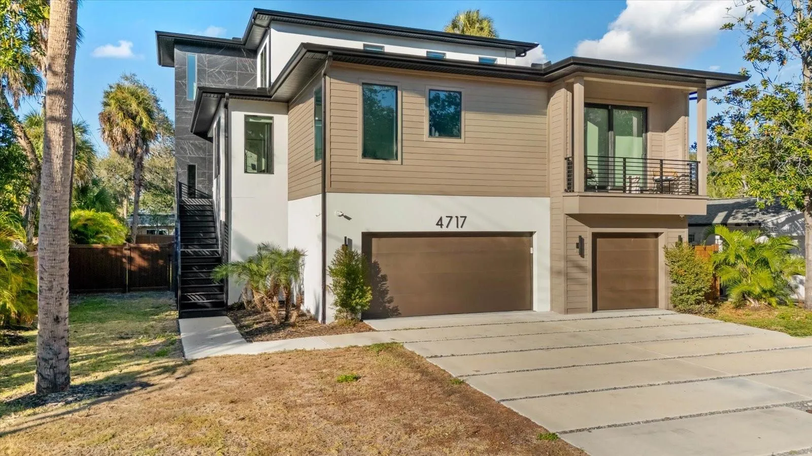 Outdoor living includes a covered terrace overlooking the private pool with waterfall spa, paver patio, and fenced side yard. Additional features include impact windows and doors, a glass stairway and railing system, a state-of-the-art security system, and an oversized garage spanning the entire first floor with parking for 10 plus vehicles, storage, and flex space. The location offers quick access to Tampa International Airport, St. Pete/Clearwater Airport, Midtown, Water Street, Hyde Park Village, beaches, dining, shopping, and top rated schools.