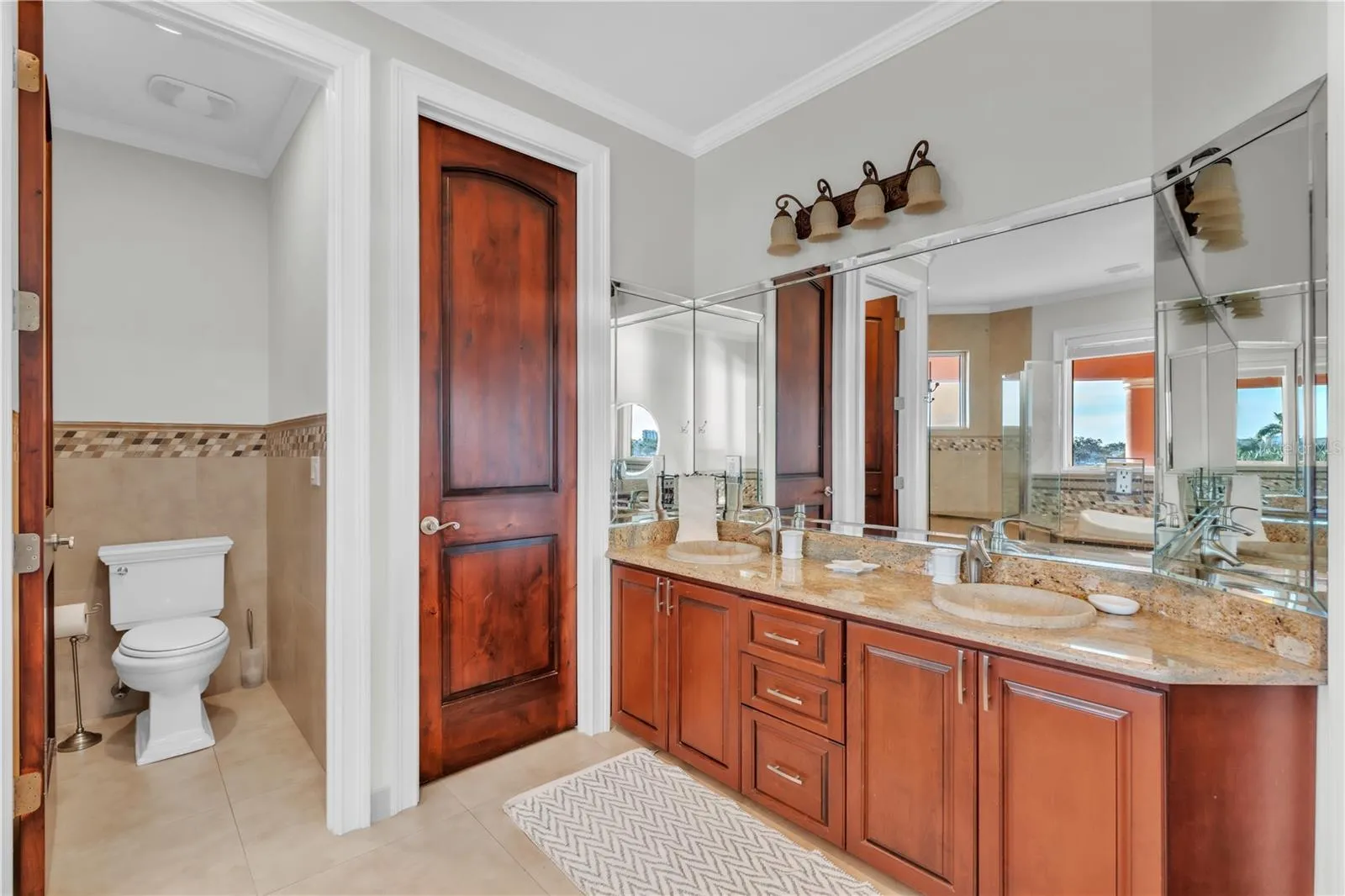 This home comfortably sleeps large parties with 5 bedrooms and 8 beds, thoughtfully arranged across multiple floors for privacy and convenience. Several rooms have balconies or water views, and all are designed in a resort-style environment with high-quality linens, comfortable mattresses, and plenty of storage. The top-floor owner’s suite is a true sanctuary with its expansive balcony, large walk-in closet, and an ensuite bathroom featuring dual vanities, rich wood cabinetry, soaking tub, and a natural-stone walk-in shower. Every bedroom is bright, inviting, and designed to make long-term living both comfortable and effortless.