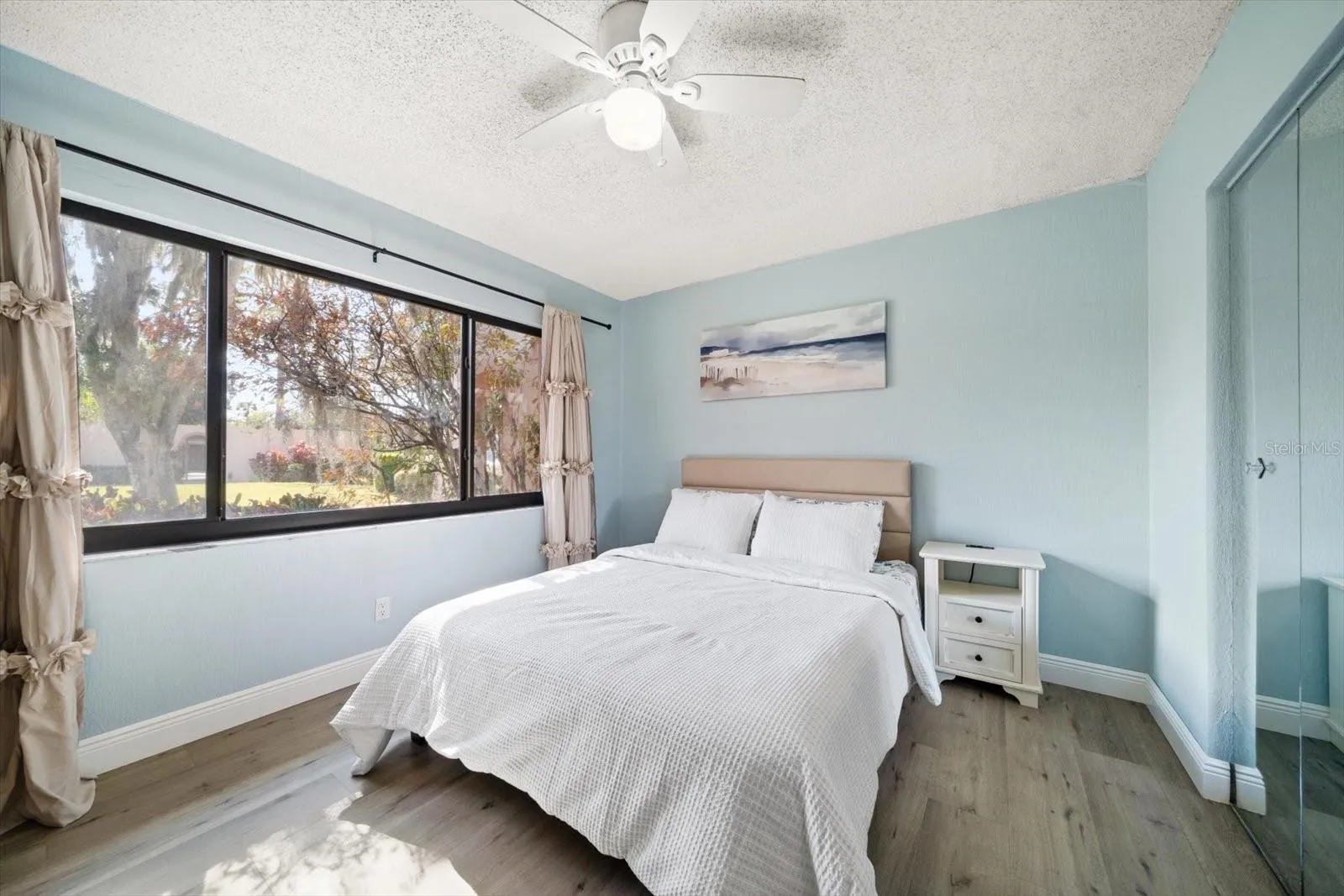 - Ceiling Fans(s), Thermostat, Walk-In Closet(s), Living Room/Dining Room Combo, Primary Bedroom Main Floor, High Ceilings, Stone Counters, Solid Wood Cabinets, Solid Surface Counters