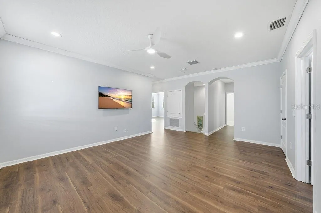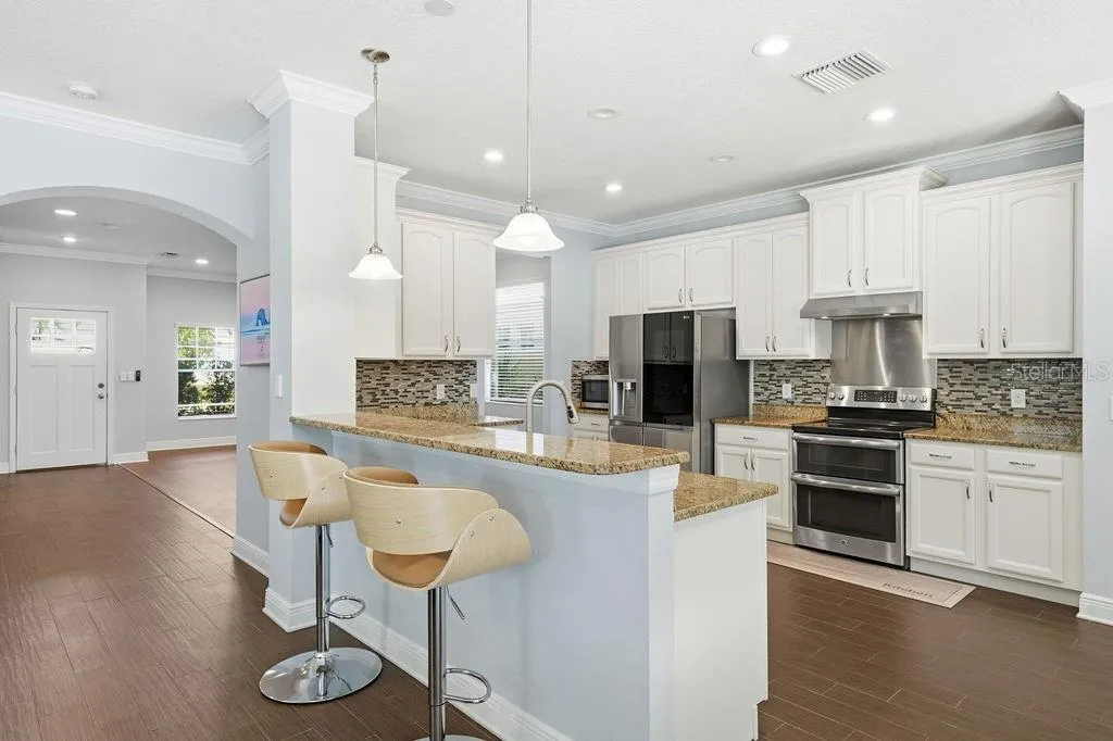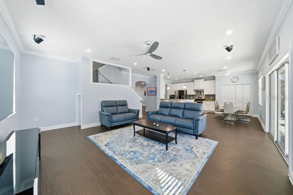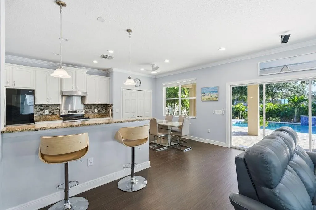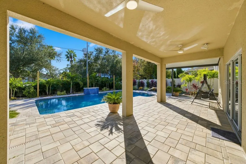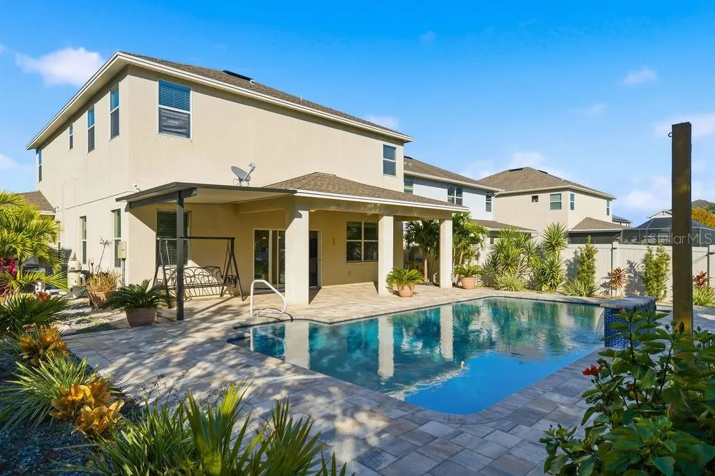 **RARELY AVAILABLE!** Welcome to the Enclave at Lake Seminole—an exclusive, highly sought-after, gated lakeside community of just fifteen upscale residences. Built in 2015, this exceptional two-story home offers nearly 3,000 sq ft of open-concept living and features the largest floor plan in the community. Set on a wider lot, it boasts a three-car garage and a freshly sealed, expansive paver driveway. Flood-zone free and untouched by last year’s storms, the property also qualifies for valuable insurance discounts. Step inside to soaring 9.5-ft ceilings, abundant natural light, and a welcoming foyer that opens to an impressive, airy layout. The ground-floor bedroom includes a spacious closet and a charming under-stair nook—perfect as a play area—located near a full bathroom and a versatile den/living room. The expansive great room, anchored by an 85-inch TV, flows effortlessly into the chef’s kitchen, featuring solid-wood cabinetry, stainless steel appliances (including a new LG app-controlled glass-front refrigerator, microwave oven, and exterior-vented range hood), granite countertops, a large pantry, and an inviting breakfast bar—ideal for everyday living and seamless entertaining. Sliding doors open to a large covered lanai overlooking a resort-style, fully fenced backyard oasis. The oversized 15’x30’ PebbleTec saltwater pool (2024) features a heating and cooling system, app-controlled pump and lighting, a waterfall with remote-controlled LED color lighting, a Polaris automatic pool cleaner and oversized plumbing and drainage. The extended paver patio—recently sealed—includes footings already installed for a screened-in pool enclosure, while the spacious 10’x35’ lanai offers year-round outdoor enjoyment surrounded by tropical landscaping and solar lighting. Upstairs, a versatile loft/family room (18’x15′) connects the master bedroom and two additional bedrooms (one with a large walk-in closet). The primary suite is a true retreat with tray ceilings, a large walk-in closet, dual vanities, a garden tub, and a separate walk-in shower. From the bathroom window, enjoy peaceful views of Lake Seminole. A generous laundry room with a new Samsung washer and dryer completes the second floor. Upgrades include freshly painted interior, dual HVAC systems enhanced with mold-resistant UV lighting, in-wall pest control, thermal windows with fitted cloth hurricane shutters, crown molding throughout, new LED lighting, new Mannington flooring, a multi-wiring package, new ceiling fans, a heated electric fireplace, and plumbing pre-installed for a water softener. The Enclave offers low HOA fees that includes gated access, a private road, sidewalks, a private fishing pier, and a boat ramp—with no CDD fees. Launch a kayak just steps from your door and enjoy the natural beauty of Lake Seminole. This prime location is minutes from Seminole City Center, top-rated schools, St. Petersburg College, the Seminole Recreation Center, shopping, dining, entertainment, and everyday conveniences. Gulf beaches are just 10 minutes away, and Tampa International Airport is a quick 30-minute drive. Residents also receive free membership to the Seminole Recreation Center, featuring a large pool, fitness center and pickleball courts. Annual rentals are permitted, and the community welcomes two large dogs. Optional furnishings are available. Homes in the Enclave at Lake Seminole are rarely offered—schedule your private showing today before this exceptional property is gone!!!