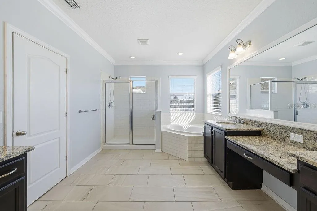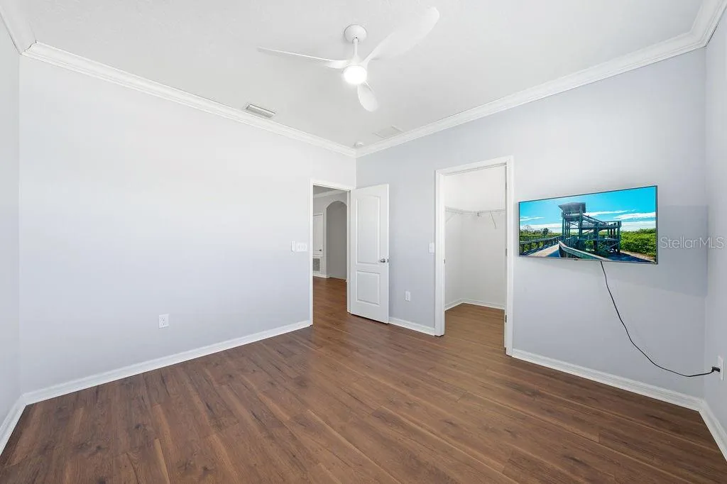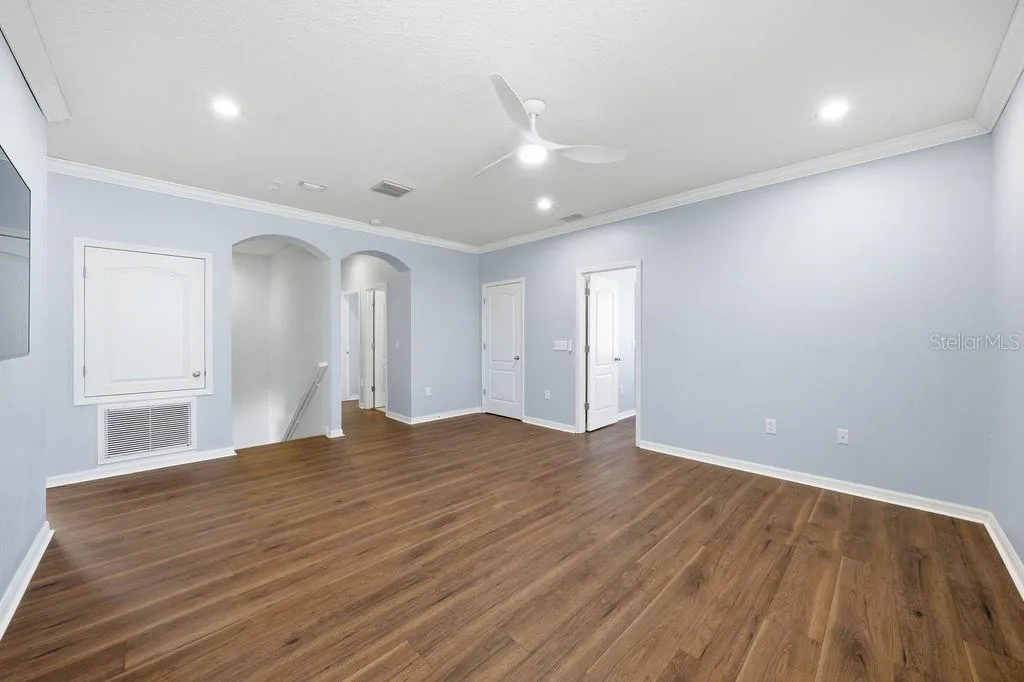 - Ceiling Fans(s), Crown Molding, Open Floorplan, Thermostat, Walk-In Closet(s), Kitchen/Family Room Combo, High Ceilings, Stone Counters, Solid Surface Counters, Tray Ceiling(s), PrimaryBedroom Upstairs