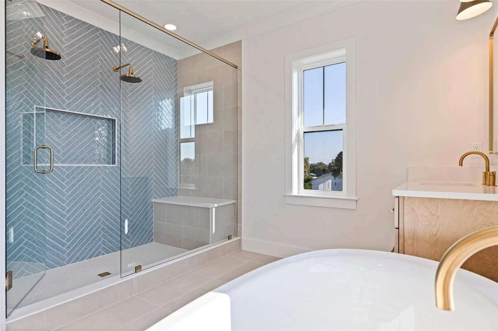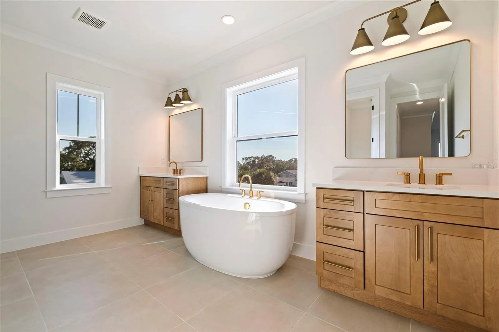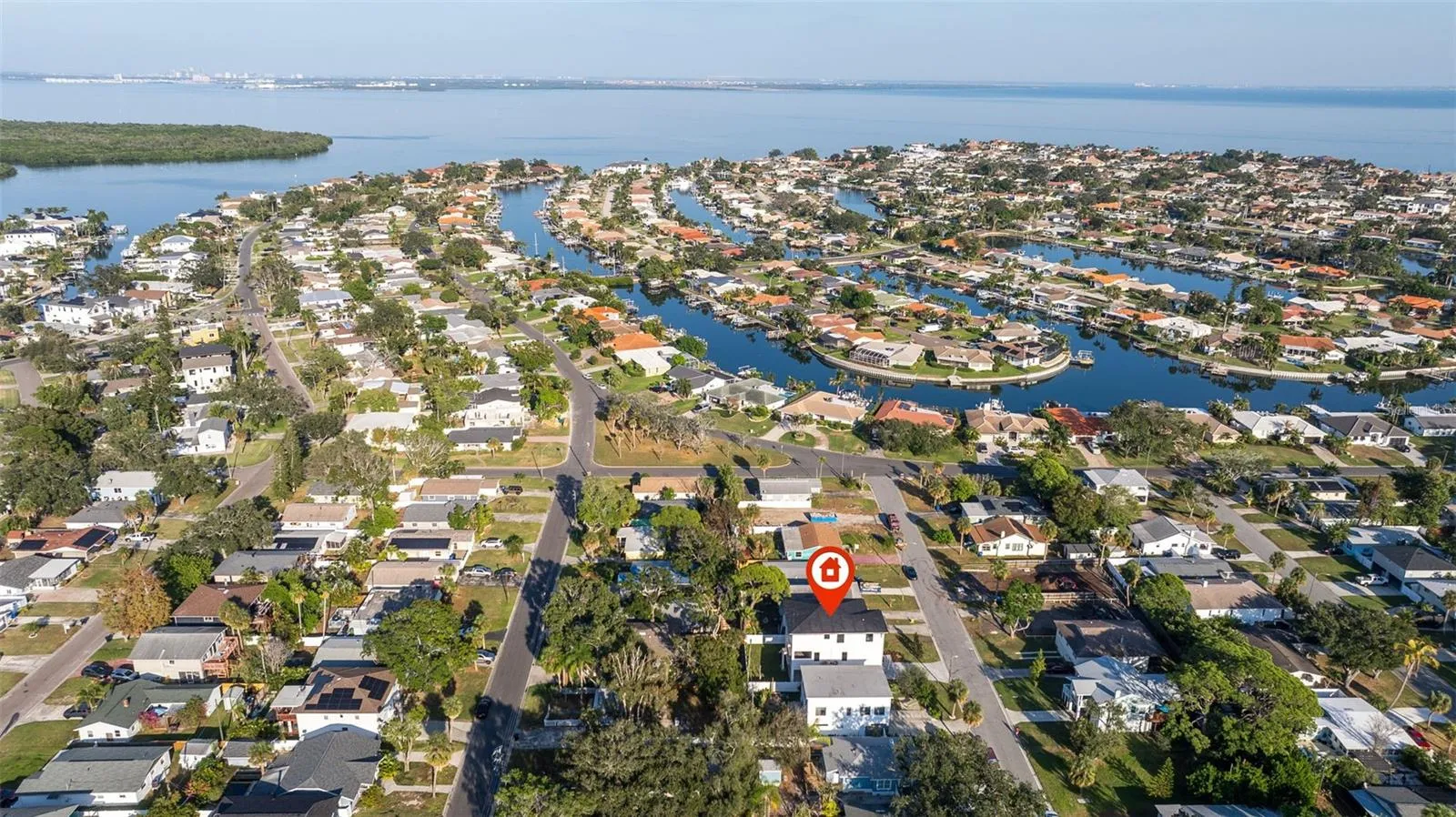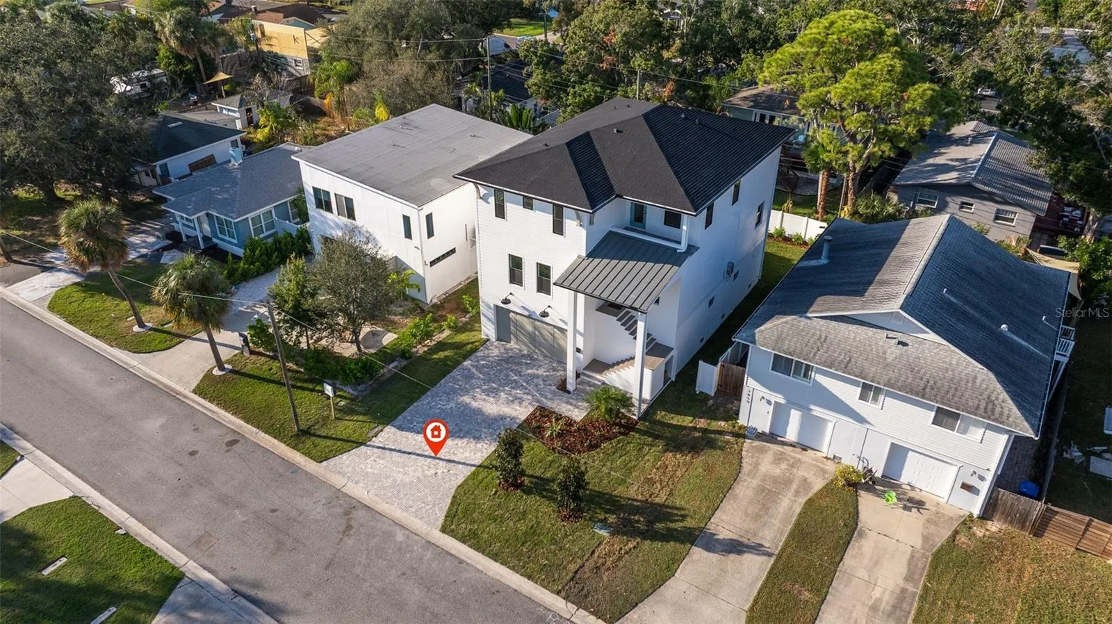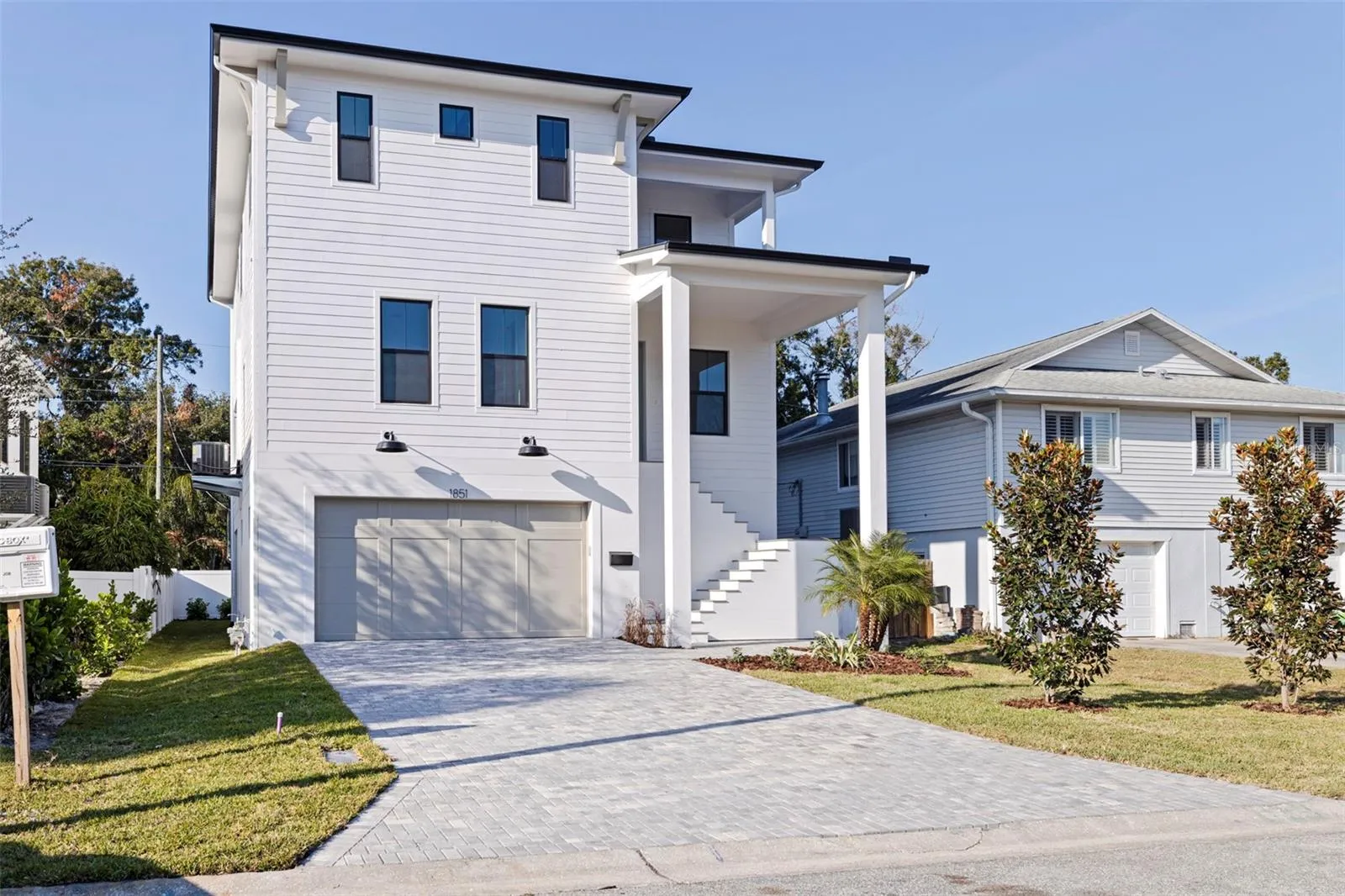 This brand-new modern coastal home offers elevated luxury living with exceptional construction and thoughtful design throughout. Built with long-term durability in mind, the residence features block construction on the first two levels, spray-foam insulation, Hardie board siding, hurricane-impact windows and doors, and an impressive 15-foot elevated main living level that sits well above required flood standards for peace of mind. Inside, the living level showcases 10-foot ceilings, engineered hardwood flooring, fully cased windows, crown molding, and custom wood ceiling beams that bring warmth and dimension to the great room. French doors open to the covered second-floor balcony, creating seamless indoor/outdoor living. The designer kitchen blends beauty and function with a large quartz island, gold hardware and finishes, Bosch stainless steel appliances, a custom wood range hood, Moen pot filler, wine fridge, solid wood shelving, and a spacious walk-in pantry. A generous dining area sits just off the kitchen, offering plenty of room for a full-size table overlooking the backyard. Also located on the main living level is a full guest bedroom and a beautifully finished full bathroom, offering flexibility for multigenerational living, a private office, or an ideal guest space. The third floor features a bright loft, perfect for a secondary living area or workspace. The primary suite feels like a true retreat with its private front-facing balcony, tray ceiling with shiplap inset, generous walk-in closet, and a spa-like bath featuring a freestanding soaking tub, two separate vanities, and an oversized dual-head walk-in shower with Schluter-KERDI waterproofing. Two additional guest bedrooms share a large Jack-and-Jill bathroom with dual sinks. Outdoor living shines on every level with a rear covered lanai, a covered second-floor deck, and a third-floor terrace with views toward Venetian Isles. Trex decking, Azek trim, and fully welded exterior railings provide longevity and low maintenance. The 1,439 sq ft garage is a rare feature in this neighborhood — boasting 9’4” ceilings, 8’ garage doors, incredible storage space, and room to accommodate a boat, golf carts, and multiple vehicles. The home sits on a fully fenced lot with vinyl privacy fencing, includes a paver driveway, and features new landscaping with a sprinkler system on reclaimed water. Additional features include: quartz countertops throughout, CAT-6 wiring, Moen and Kohler plumbing fixtures, LED under-cabinet lighting, solid wood shelving in all closets and pantry, Trex and Azek exterior finishes, standing-seam metal roof accents, natural gas for the cooktop, tankless water heater, dryer, and grill, plus pre-plumb and gas line run for a future pool heater and outdoor kitchen. Located in one of Northeast St. Pete’s true golf-cart-friendly neighborhoods, residents enjoy quick access to Islander Market, the A-rated Shore Acres Elementary, waterfront parks, and the local restaurants and shops that make this area one of the city’s most desirable — all just minutes from vibrant downtown St. Petersburg. This home offers elevated construction, refined design, and luxury finishes at every turn — an exceptional opportunity in a highly sought-after neighborhood.