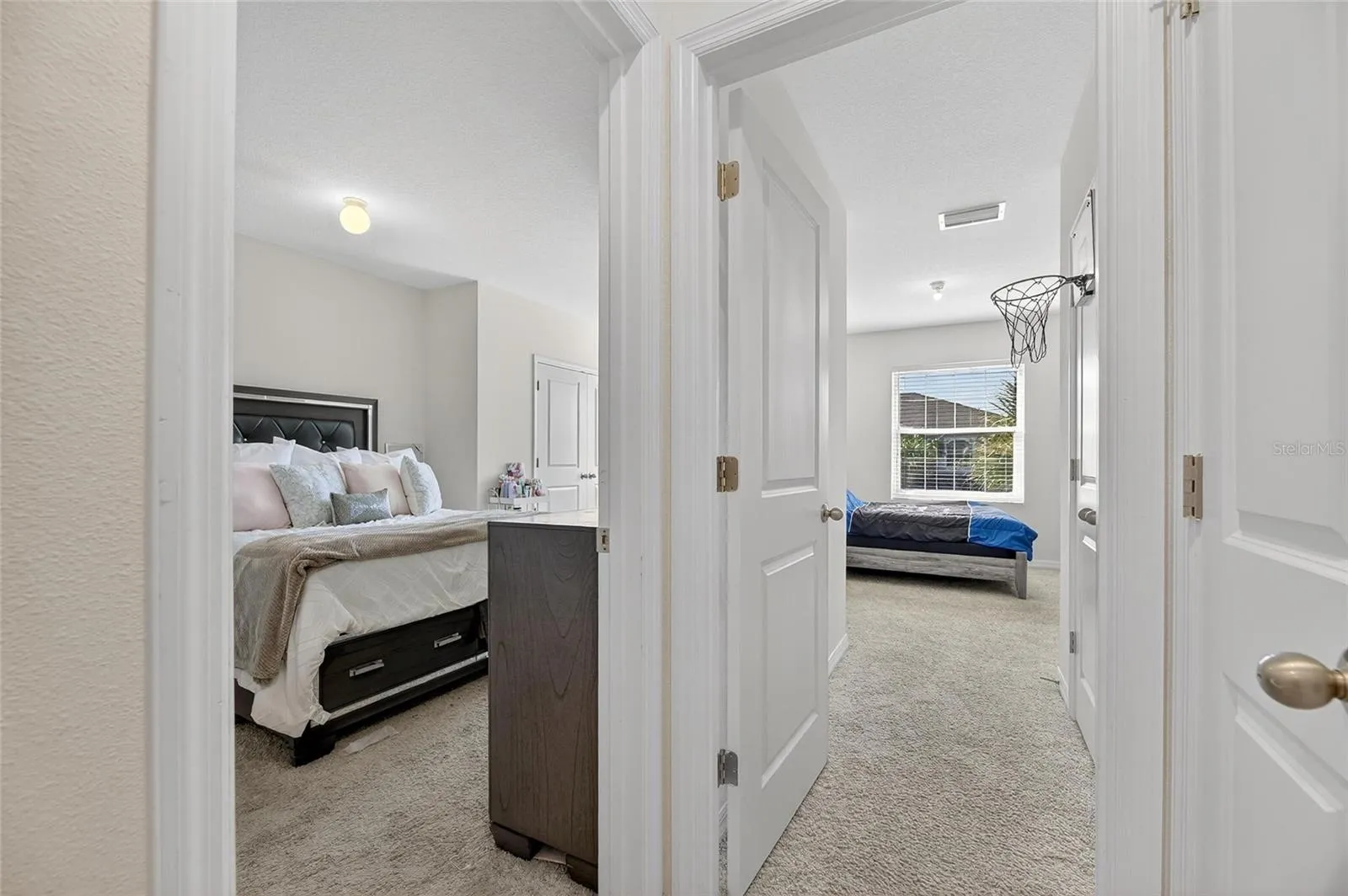 Upstairs, the Owner’s Suite offers a peaceful retreat with a large bedroom, a walk-in closet plus an additional storage closet, double vanity, and a walk-in shower. The second floor also includes two additional bedrooms—one with its own walk-in closet—a full second bathroom, and a conveniently located laundry room.