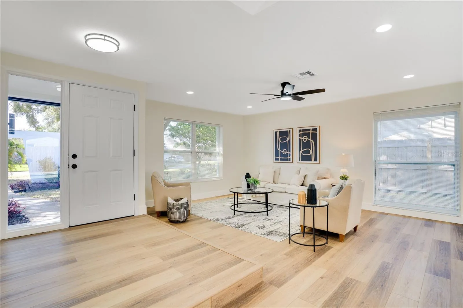 This beautifully updated 3 bedroom, 2 bath Largo home brings together modern style and easy living, featuring fresh interior and exterior paint, LVP flooring throughout, and a bright open layout that blends the living room, dining room, and kitchen seamlessly. The kitchen is a standout with stone countertops, stainless steel appliances, a stunning backsplash, recessed lighting, and an island that opens right up to the main living area, all framed by vaulted ceilings that add great volume and light. The primary bedroom offers a walk-in closet and a sleek en-suite with a walk-in shower, while the in-ground pool and large fenced backyard give you the perfect outdoor retreat. Tucked just minutes from the water—but in a non-flood zone—you’re also close to parks, beaches, shopping, dining, and entertainment. Don’t miss your chance to see this one—schedule your showing today!