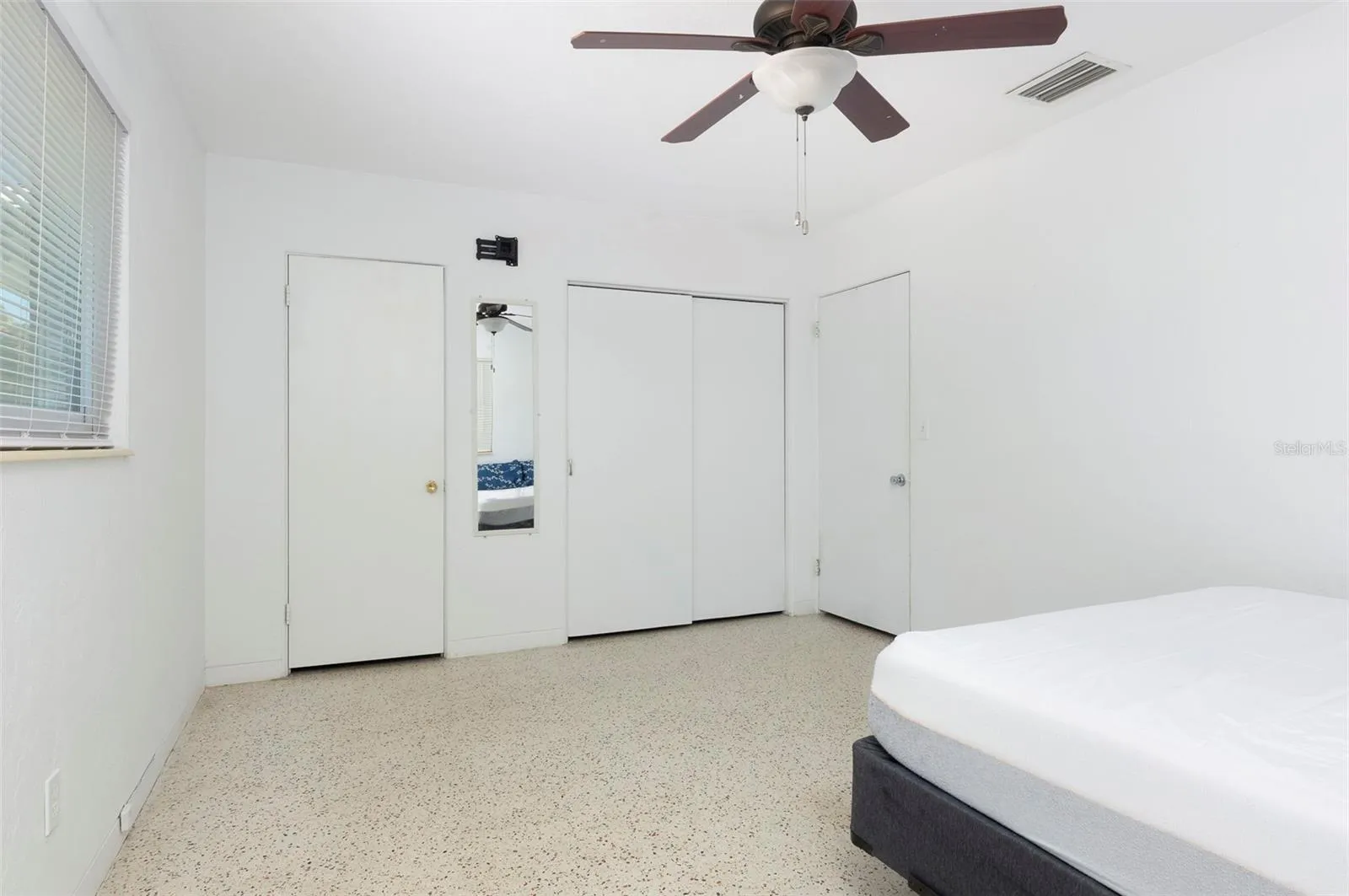 This two-bedroom, two-bathroom home is a charming and durable block construction that offers both style and functionality. As you enter the home, you’re greeted by the these terrazzo floors that extend throughout the residence. These floors are known for their durability and glossy finish when they are polished. They can add an elegant yet retro touch to the home’s ambiance. They are also easy to maintain and perfect for those seeking a blend of vintage character and modern simplicity. The living area is spacious, offering plenty of room for relaxation and entertainment. It flows seamlessly into a well-appointed kitchen, designed with efficiency and modernity in mind. The primary bedroom is generously sized, complete with its own private bathroom. The second bedroom is also well-sized, suitable for guests, children, or even a home office. Adjacent to it is the second bathroom, easily accessible for guests and designed to match the home’s stylish interior.