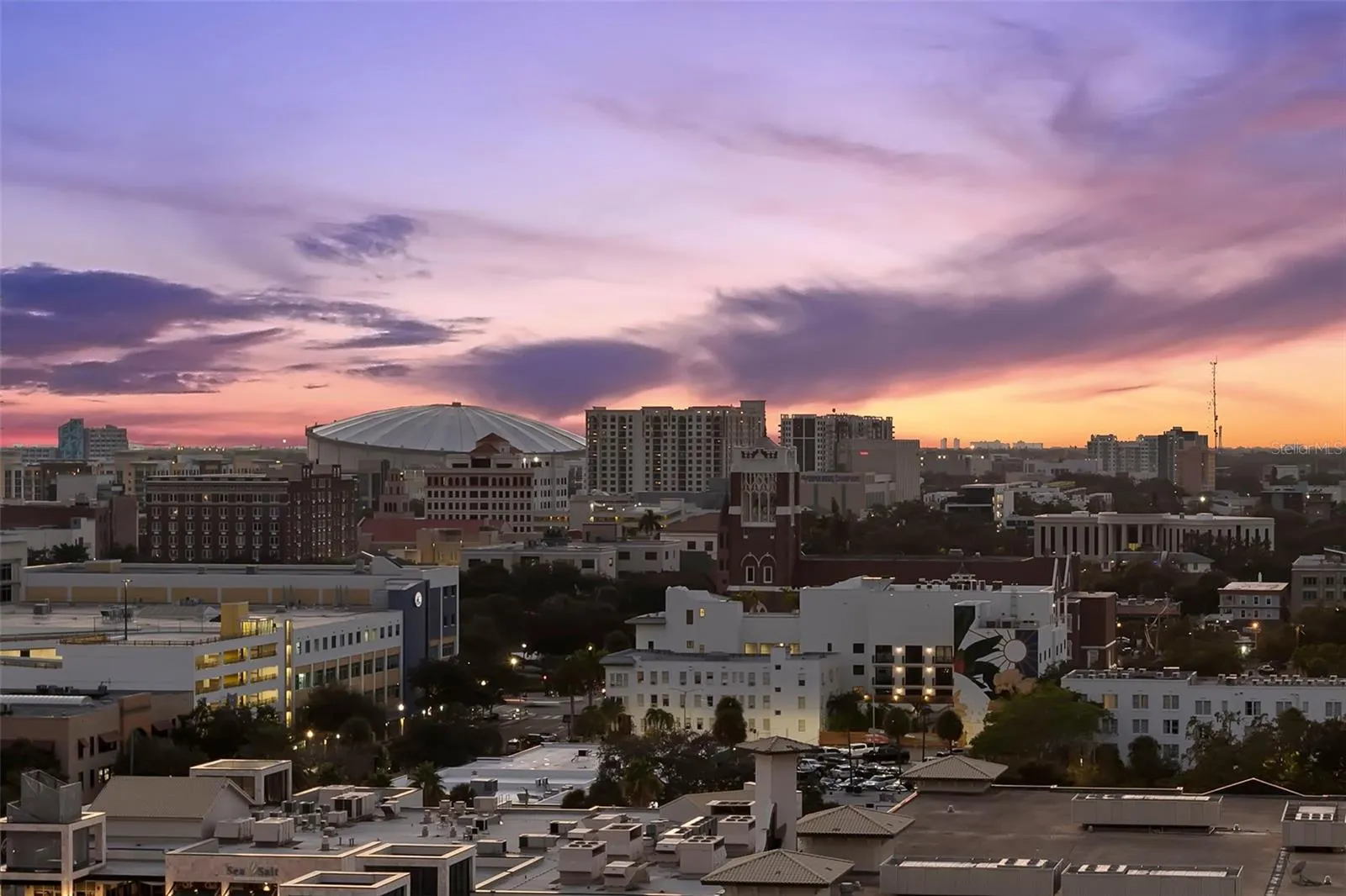 A rare opportunity to own a Mediterranean-inspired penthouse sanctuary, perched at the very top of The Cloisters and located directly on Beach Drive. This distinctive 14-story, 32-unit boutique condominium community was designed by renowned architect Randy Wedding (notably of the Vinoy restoration). With its private elevator foyer, this exclusive full-floor penthouse spans an impressive 5,100 square feet, offering sweeping 360° waterfront and downtown city views of Tampa Bay, The Vinoy Club & Yacht Basin, St. Pete Pier, Albert Whitted Airport, Sunshine Skyway and Tropicana Field. This residence is an art collector’s dream — creating the perfect backdrop with expansive wall space, abundant windows, 10-foot ceilings, and French doors throughout. Relax in the generous primary suite with its spa bath and walk-in closet, two guest bedrooms, and a dedicated executive office. Entertaining is effortless thanks to a formal dining room, an informal game room with wet bar, and two additional dining areas — plus bar seating. The gourmet kitchen features custom wood cabinetry, granite countertops, dual sinks, stainless appliances, and a large walk-in pantry. Convenience meets security within the gated ground-floor garage, offering four assigned parking spaces and two private storage units. Amenities include a pool, club room, fitness center, guest suite, and a community concierge — just steps from Beach Drive’s world-class museums, boutiques, dining, and waterfront parks. Combining architectural significance with a coveted neighborhood setting, The Cloisters delivers an intimate, owner-focused experience while celebrating life in the heart of downtown St. Petersburg and minutes to St. Pete’s best museums: Salvador Dalí Museum, the Museum of Fine Arts and the immersive Museum of the American Arts & Crafts Movement. Schedule your private showing today and experience luxury living in the sky!