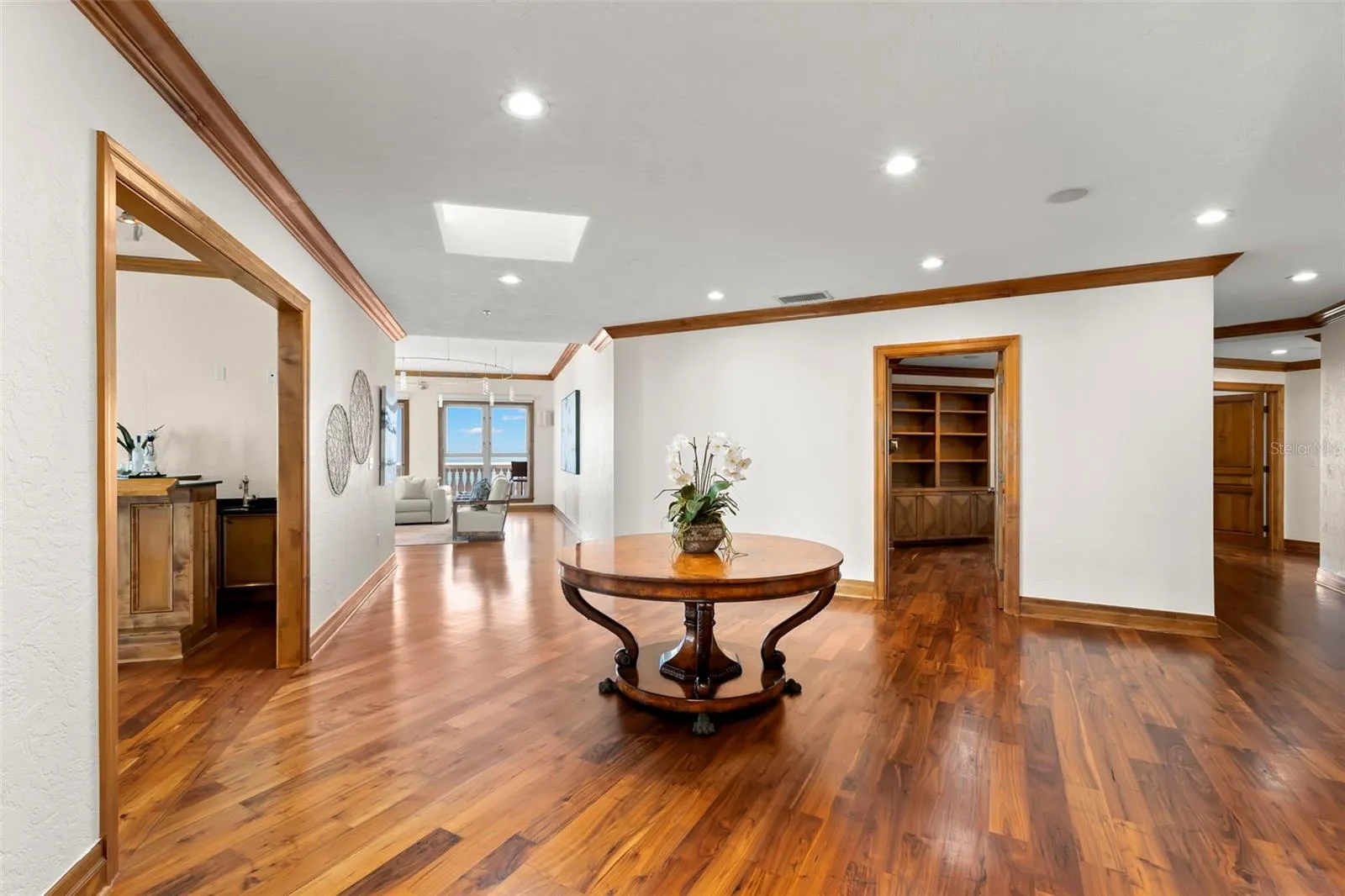 - Ceiling Fans(s), Elevator, Crown Molding, Walk-In Closet(s), Eat-in Kitchen, Window Treatments, High Ceilings, Stone Counters, Solid Wood Cabinets, Solid Surface Counters, Wet Bar, Built-in Features, Dry Bar
