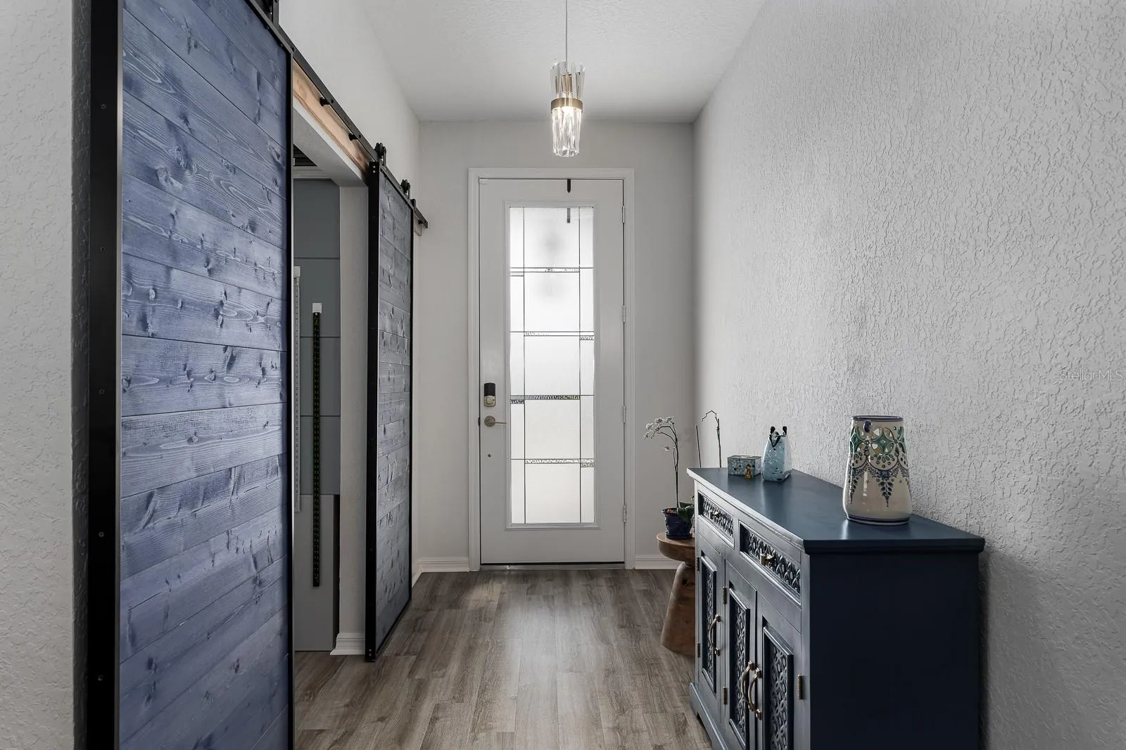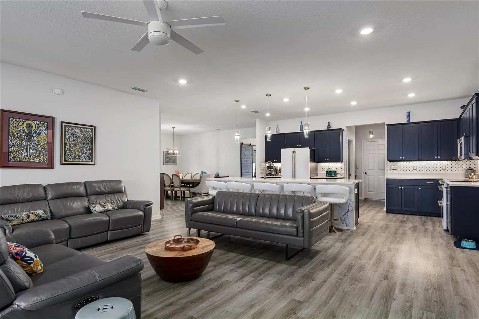 Immaculate 4-bedroom, 2-bath home with a spacious 3-car garage and an oversized 12′ x 49′ screened addition to the lanai with panoramic/picture window view overlooking a peaceful pond. The beautifully maintained layout features a stunning kitchen with a large island, custom pantry, and clear sightlines into the expansive great room, highlighted by a triple slider framing serene water views. The generously sized primary suite includes an en-suite bath and a custom walk-in closet. A large formal dining room and a private office/art studio off the entryway provide excellent flexibility. Just inside the garage entry, you’ll find a well-designed laundry room with a drop zone, perfect for everyday convenience. This home is truly move-in ready and ideal for those seeking space, style, and exceptional outdoor space.