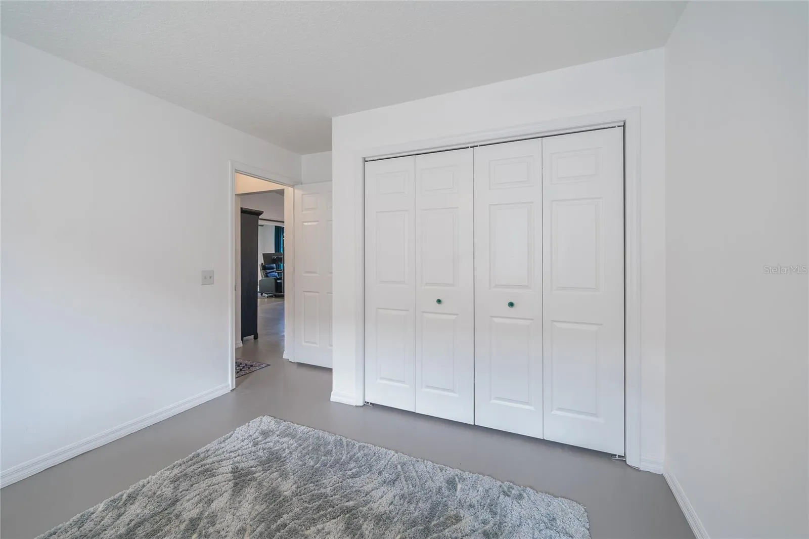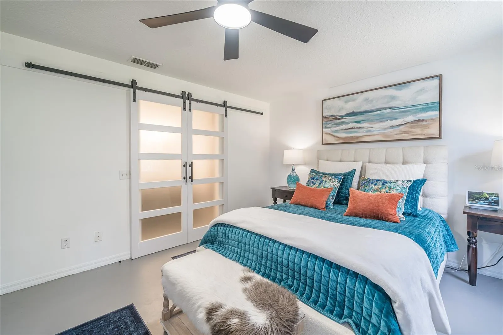 Looking for an updated home? Search no more! Lovely upgrades can be seen from the moment you pull in the driveway. New coach lights on both sides of the hurricane rated garage door. The kitchen has freshly painted cabinets, new lighting and ceiling fan, newer appliances and beautifully painted wood floors. Living room and bedroom have stained concrete floors with crisp, clean walls. Modern, barn doors open up to the office. This awesome room would be perfect for a home office with french doors that lead to the back patio. Guest bathroom has sleek vanity, new lighting, mirror, hardware and new commode. Master suite has an amazing closet that doubles as a changing room. The current owner has a vanity and a dresser in it along with all the normal closet stuff. Master bathroom has dual sinks, chic vanity, new lighting, new commode and walk in shower has charcoal. The same modern barn doors separate the ensuite from the bedroom. Very stylish. 55+ community has a pool, shuffleboard, clubhouse and lots on the event calendar. This home is on a corner lot with newer roof and water heater. The a/c unit is maintained annually and has a UV light installed. So many great features and upgrades throughout and around this property.