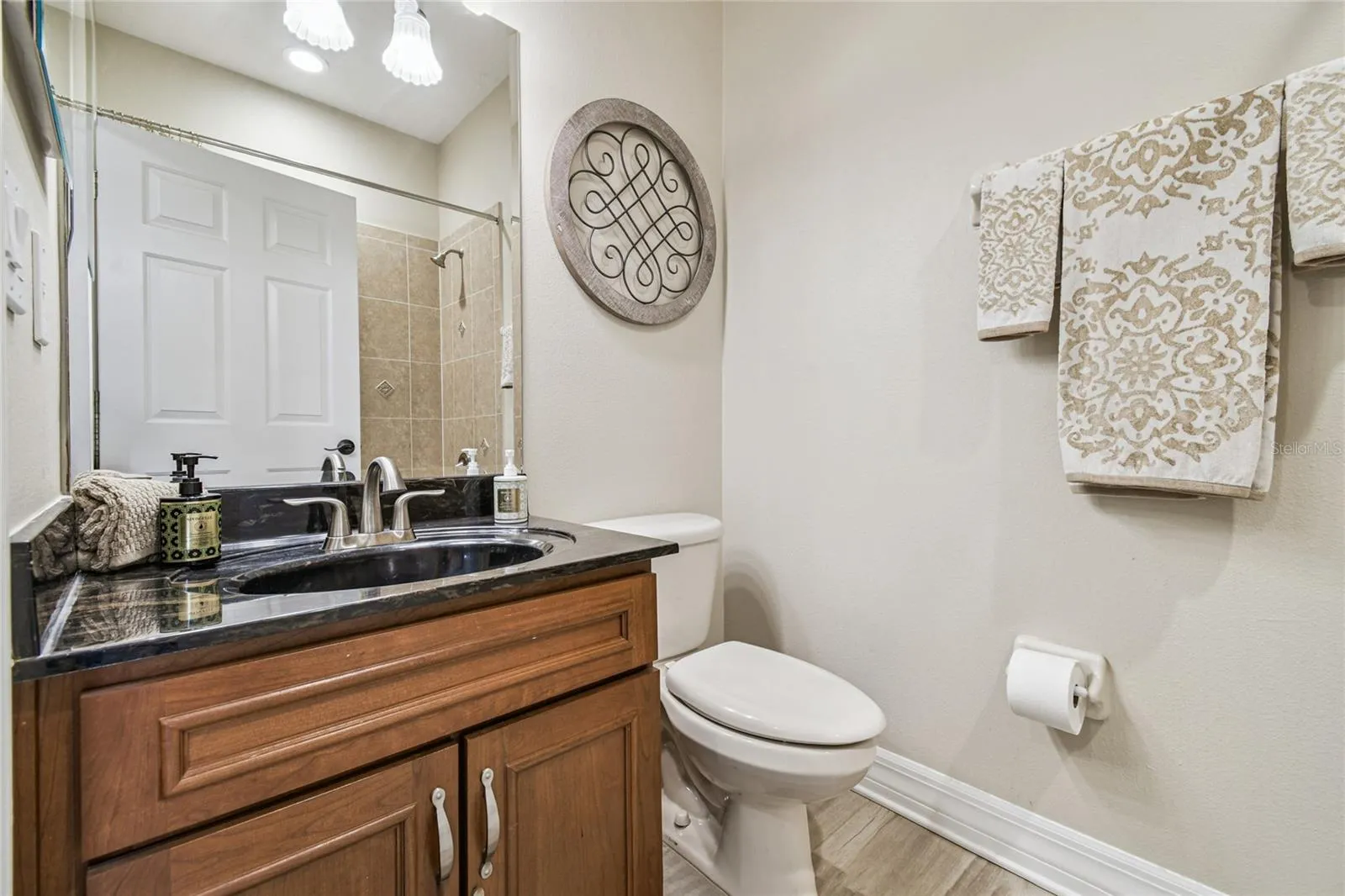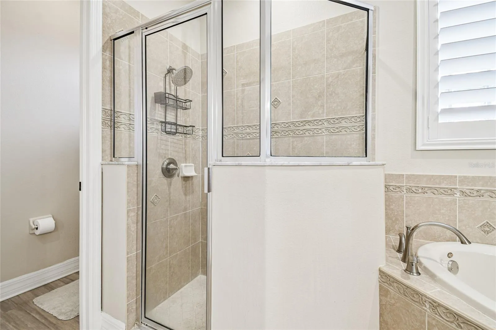 The spacious first-floor primary suite offers a peaceful retreat with a walk through to a large bathroom including corner tub and walk-in shower, plus direct lanai access to sit poolside with your morning coffee. A separate guest bathroom is also located on this main level as well as an additional office or bedroom. The kitchen features double edge granite countertops, wood cabinets, stainless steel GE appliances, gas stove, and an eat-in nook overlooking the pool area, along with a large pantry for exceptional storage.