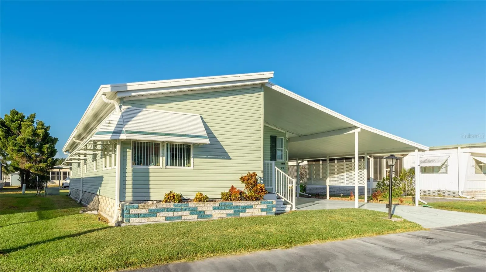 Welcome to this beautifully maintained 2002 double-wide home in Westwind Village, a welcoming 55+ community where cable, internet, water, sewer, and trash are all included in the monthly association fee. This inviting residence features vaulted ceilings throughout, a spacious living room, and an additional den that provides valuable flexibility for work, hobbies, or relaxation. The primary bedroom offers a generous walk-in closet and an en-suite bath complete with dual sinks and a soothing spa tub/shower, while the second bedroom also includes vaulted ceilings and its own walk-in closet. A convenient utility room houses the indoor laundry, and additional highlights include a tandem two-car carport, leaded-glass entry doors, and an A/C and water heater replaced approximately four years ago. Westwind Village welcomes two pets per household and offers a vibrant, active lifestyle with amenities such as a heated community pool, full clubhouse with kitchen, billiards/card room, shuffleboard courts, horseshoe pits, bocce court, library, laundry room, mail center, an active community event calendar, and optional RV/boat storage at preferred resident pricing. This move-in-ready home perfectly blends comfort, convenience, and a lively Florida lifestyle in a prime Bradenton location.