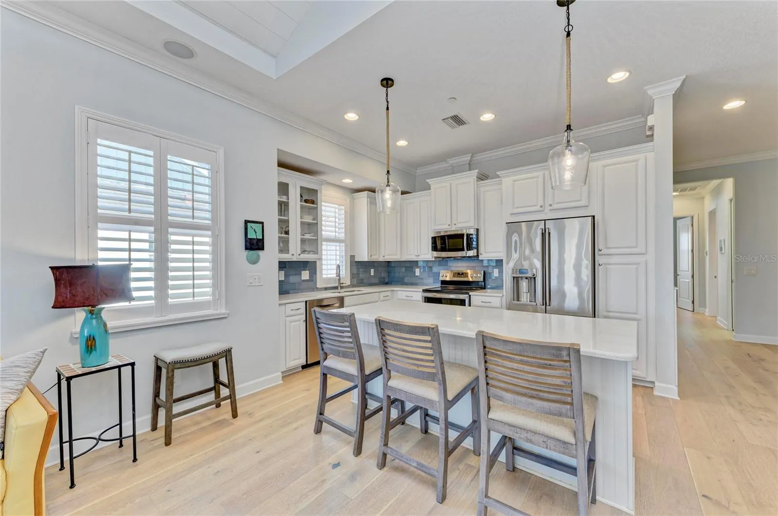 Welcome to this immaculate 3-bedroom, 3-bath, award-winning Andros-style home, perfectly situated in the gated coastal resort community of Harbour Isle on Anna Maria Sound. Nestled at the end of a quiet cul-de-sac, this premium homesite offers exceptional privacy and peaceful surroundings. With the main living room, sunroom, kitchen, and primary suite all facing west, you’ll enjoy expansive, unobstructed Sapphire Lake views and breathtaking sunsets every evening. This upgraded residence features beautiful, engineered wood flooring, designer lighting, and custom window treatments—including shutters and motorized blinds. The gourmet kitchen impresses with white cabinetry, newer GE stainless steel appliances, GE Café series refrigerator, double oven, and an extra quite Bosch dishwasher, sleek quartz countertops, and a generous island ideal for cooking and entertaining. The Great Room is enhanced by upgraded ceiling-mounted surround sound and an impressive 65” LG television for exceptional viewing and audio. Vaulted wood-beam and tray ceilings, crown molding throughout the common areas, shiplap accents in the guest room, wainscoting, and elegant French doors add warmth and architectural charm. A private elevator provides effortless access from the oversized two-car garage to the main living level. The tranquil primary bedroom boasts stunning water views and a spacious walk-in closet. beautiful mirrors flank each side of the king size bed. Most furniture can be included in this gorgeous home. Additional highlights include a 12-foot garage ceiling with abundant storage, a Trane air-conditioning system for year-round comfort. Just moments from the sugar-sand beaches and vibrant island lifestyle of Anna Maria, Harbour Isle offers an unmatched array of resort-style amenities. Enjoy scenic walking and biking trails, multiple pools, playgrounds, and the spectacular 23,000 sq. ft. Beach Club, complete with water views, Sky Bar restaurant, fitness center, resort-style pool, and private beach. Nearby, residents can also enjoy the Jimmy Buffett–inspired Compass Hotel, marina, and tiki restaurant. Outdoor enthusiasts will love the close access to Robinson Preserve and other pristine natural areas. Don’t miss the opportunity to make this exceptional coastal retreat your own—schedule your private showing today! view video at https://tours.vtourhomes.com/348sapphirelakedr201bradentonfl?b=0#external_1764161883074