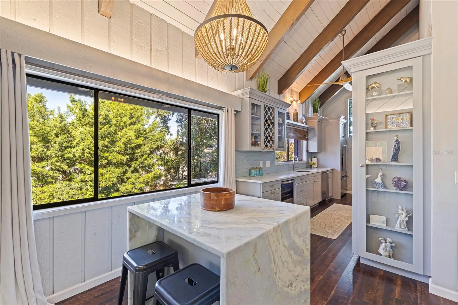 Experience true Florida living in this coastal, move-in ready, high & dry, two-story home located in Tierra Verde’s highly sought-after Sands Point neighborhood. Set in a quiet yet very vibrant and active waterfront community, this residence offers comfort, privacy, and peace of mind, having remained completely dry through the recent hurricanes. The welcoming, light blue front door opens to soaring ceilings with exposed beams, wood-look luxury vinyl floors, and abundant windows that fill the home with natural light. A sliding door connects seamlessly to the pool area, creating an easy indoor-outdoor flow. The main upper level offers a spacious living room featuring a wood-burning fireplace and a cozy formal dining corner, blending into the stunning updated kitchen. The kitchen showcases elegant countertops, ample cabinet space, and a sleek island that connects the dining and kitchen areas while offering convenient casual counter seating. Around the corner a spacious guest bedroom with dramatic ceilings, a full closet, and a beautifully updated bath. The expansive primary suite on the east side features an office nook or space to expand the already generous walk-in closet, plus a stunning ensuite bath with an oversized walk-in shower. The lower level is accessible via staircase and offers another private bedroom with ensuite bath. There is a bonus family/playroom with walkout access to the pool, and a two-car garage with laundry area, an additional refrigerator, water softener, and plenty of storage. In addition to the garage parking, the large driveway provides convenient space for multiple cars, perfect for extended family and guests. Out back, enjoy a fully fenced oasis with in-ground pool, ample space for entertaining, a setup ideal for an outdoor entertaining kitchen, plus a shed tucked in the corner for tools and water toys. The landscaping is low-maintenance, lush, and private, perfectly embracing the Florida lifestyle.