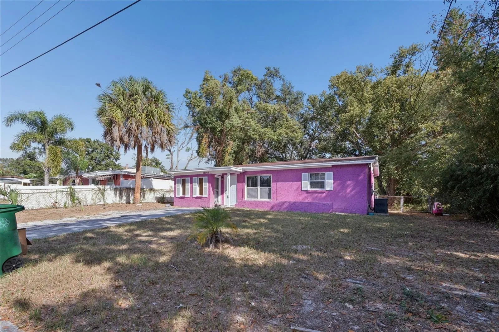 This single-story home sits on a spacious lot with a long private driveway, mature shade trees, and plenty of privacy with room to expand. The freshly painted magenta exterior with charming shutters and a covered front entry makes a bold first impression. The oversized, fully fenced yard offers space for entertaining, parking, or future additions, while the rear attached structure adds flexibility and potential for conversion.