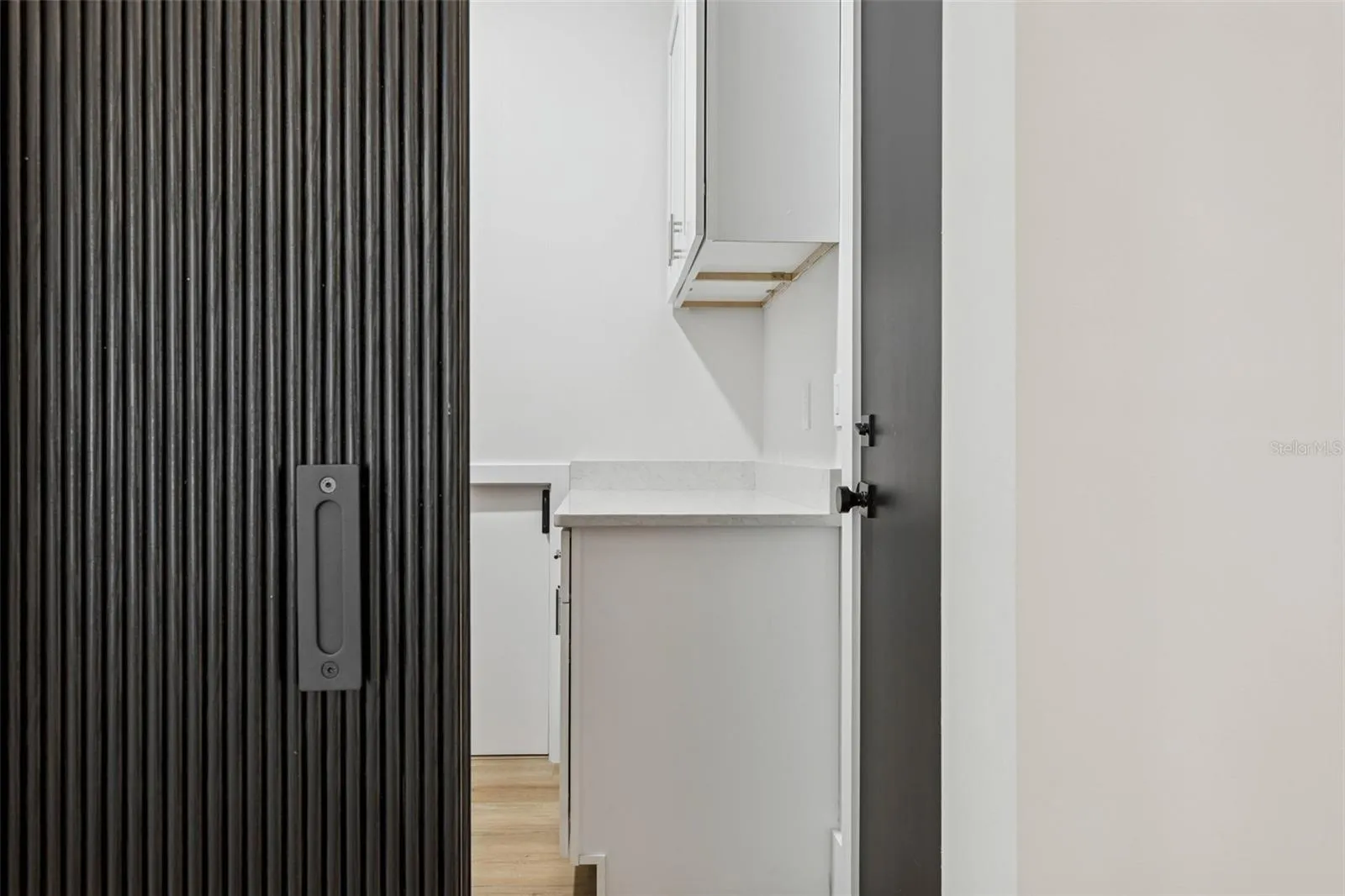 At the heart of the home, the chef’s kitchen delivers true luxury with a custom island and breakfast bar, gas cooktop with vented hood, built-in appliances, beverage cooler, floor-to-ceiling cabinetry, floating wooden shelves, and hidden entry doors leading to a spacious walk-in pantry. The layout is ideal for those who love to cook, entertain, or simply enjoy a beautifully crafted space.