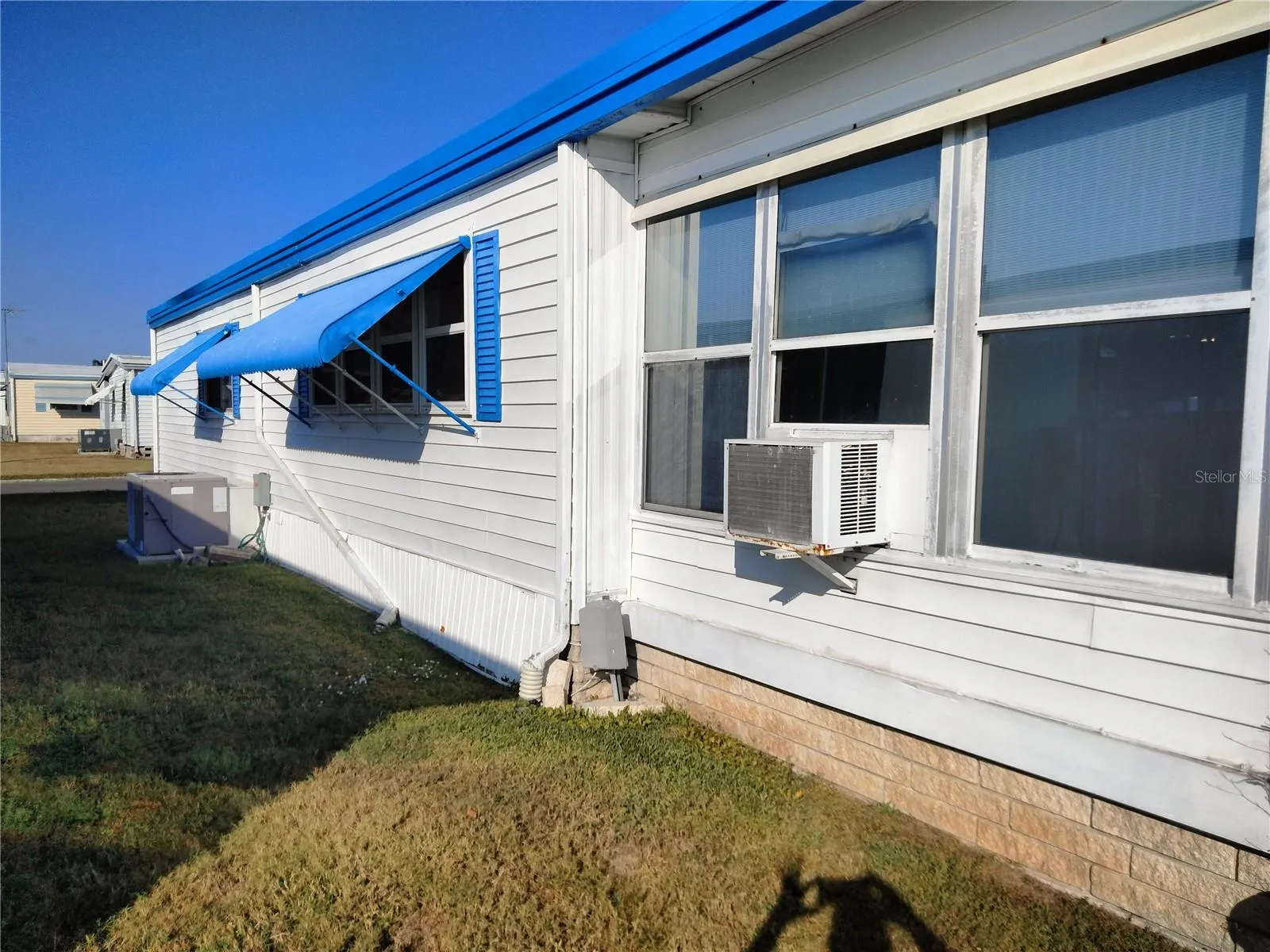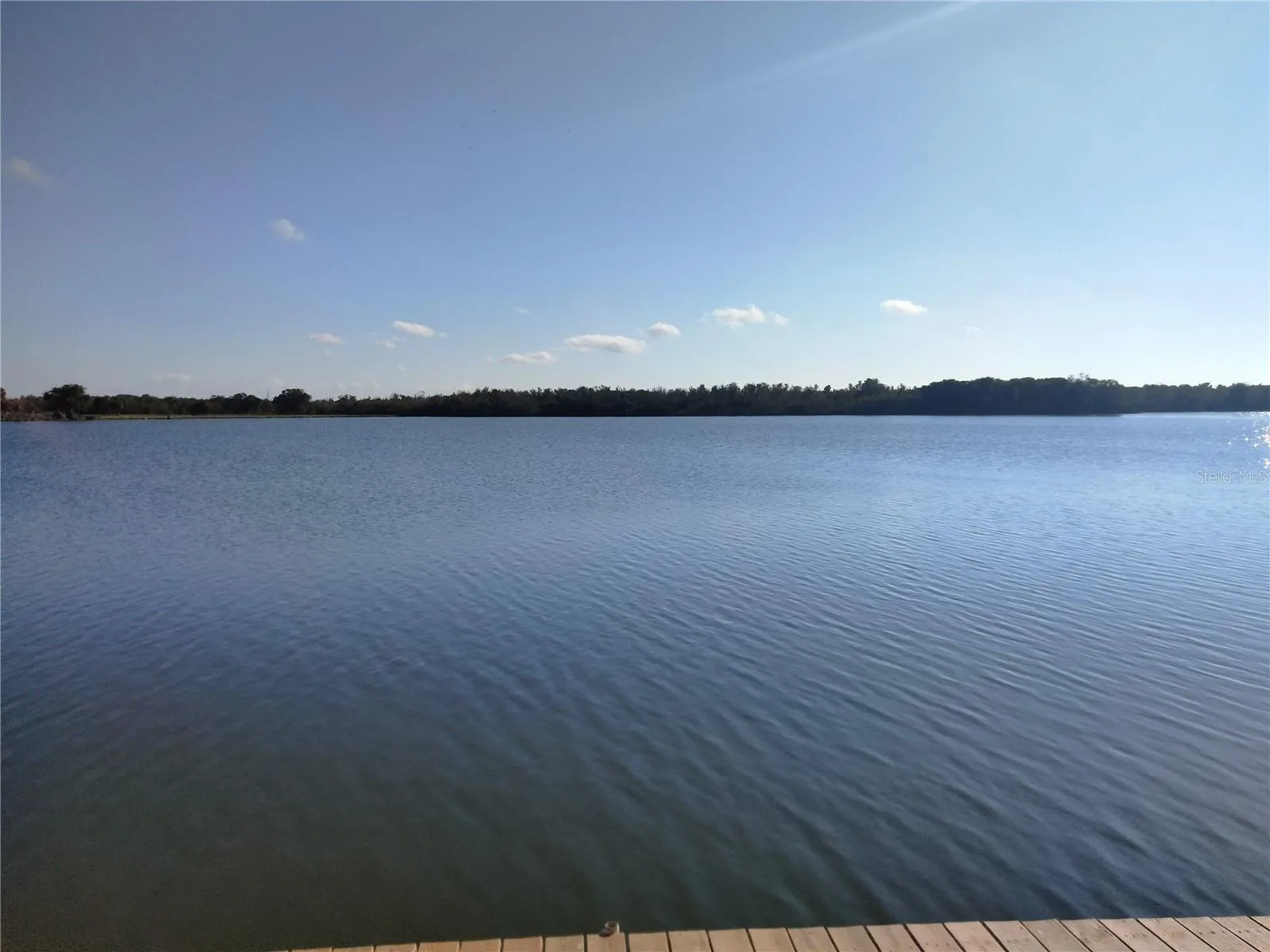 There is a formal dining room with hutch, to store your favorite dinnerware, as well as knick knacks. The home has mostly laminate floors, with tile in the kitchen and baths. The kitchen has all white appliances, including dishwasher and microwave. The backsplash is custom and is stamped tin. There is a large double sink in the kitchen. The main bath is updated is en-suite in the main bedroom and has a walk-in shower. The hall bath is a tub shower combo and is mostly original. The home has 4 ceiling fans in the main home and 2 in the Florida room. The bedrooms in this home are larger. There is a screened front porch just outside the front door and is perfect for gatherings. The large shed has a work bench and storage, as well as the washer and dryer. The shed is made up of two rooms for even more storage. Out back, by the lake is a beautiful concrete patio and two large palm trees, just waiting for you and your guests to enjoy. Whether it’s boating, fishing, sunbathing or barbecuing this place is waterfront living at its finest. Outside the home has metal storm shutters to cover the windows. At the lakes edge is a wood board walk, near the seawall. Many updated double pane vinyl windows and a metal roof over, age unknown. The home’s exterior has vinyl siding and an enclosed Florida Room at the rear, with great lake views. Florida room has its own wall cooler, 2 ceiling fans and is a perfect spot for morning coffee or an evening drink. Golf carts and motorcycles welcome.