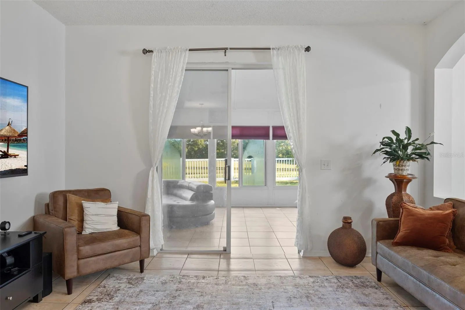 This charming 3-bedroom, 2-bathroom single-family home, built in 2000, offers approximately 1,330 sq. ft. of living space plus a 476 sq. ft. enclosed Florida sunroom—perfect for relaxing, entertaining, or enjoying serene pond views. The kitchen features granite countertops, abundant wood cabinetry, and a pantry, flowing seamlessly into the spacious living and dining areas.