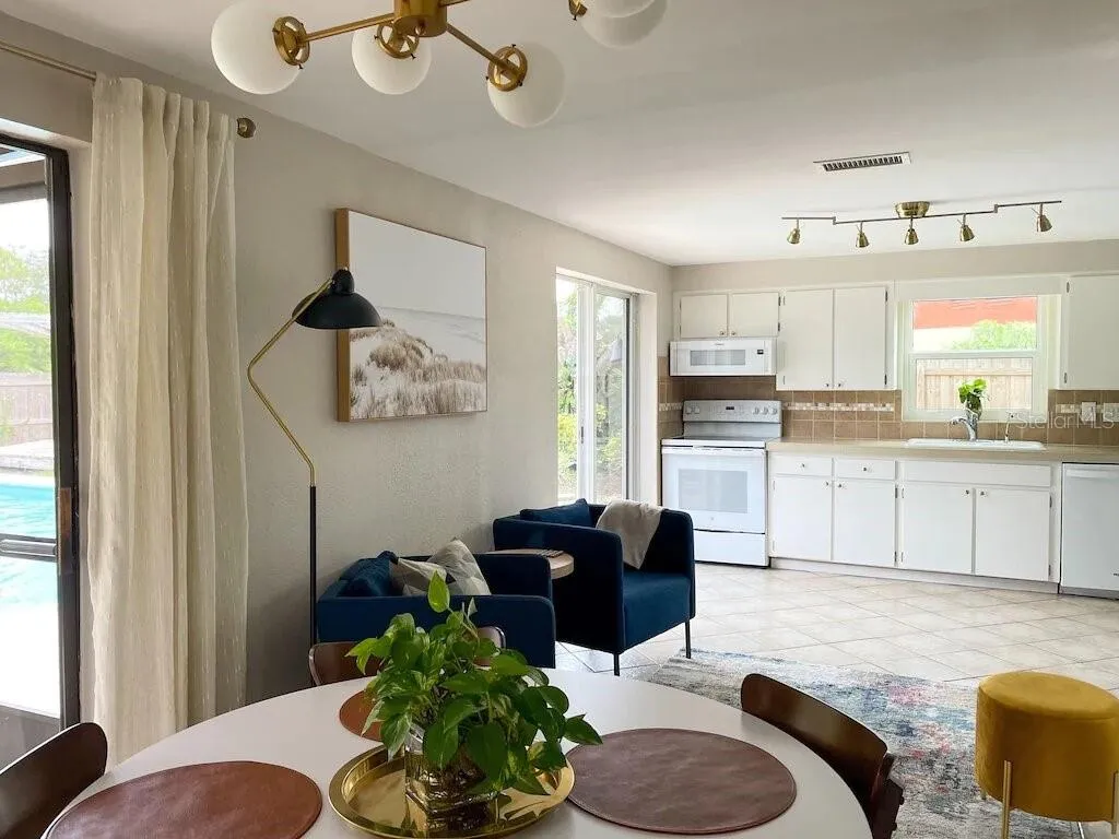 Beautifully maintained pool home. Great location on a quiet cul-de-sec. This home comes fully furnished, making it easy to settle in immediately or a perfect turnkey option for short-term rentals or Airbnb. Close to shopping, restaurants and walking distance to the elementary School. 15 mins to beach. Tile throughout house. Lots of light and views of pool & yard throughout home from 3 sliding doors and newer window. Plenty of parking with your 1 Car Garage and extra long driveway. Huge fully-fenced backyard with glistening in-ground lighted pool, large raised wooden deck perfect for your hobbies, a swing or even a band! Large screened in porch overlooks pool. Front fence has a gate which opens up to the pavered side yard with covered carport, great for your water toys & extra storage. Newer hurricane rated, double Payne PGT windows (2018) and 1 of the 3 sliding doors is newer. Gutters (2016), Newer Appliances, Water Softener, Fence 2020, Roof 2011, Hot Water Heater (Oct 2008), AC (2025).