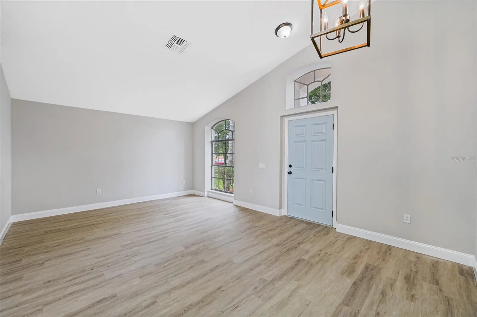 - Kitchen/Family Room Combo, Primary Bedroom Main Floor, High Ceilings, Vaulted Ceiling(s), Solid Surface Counters