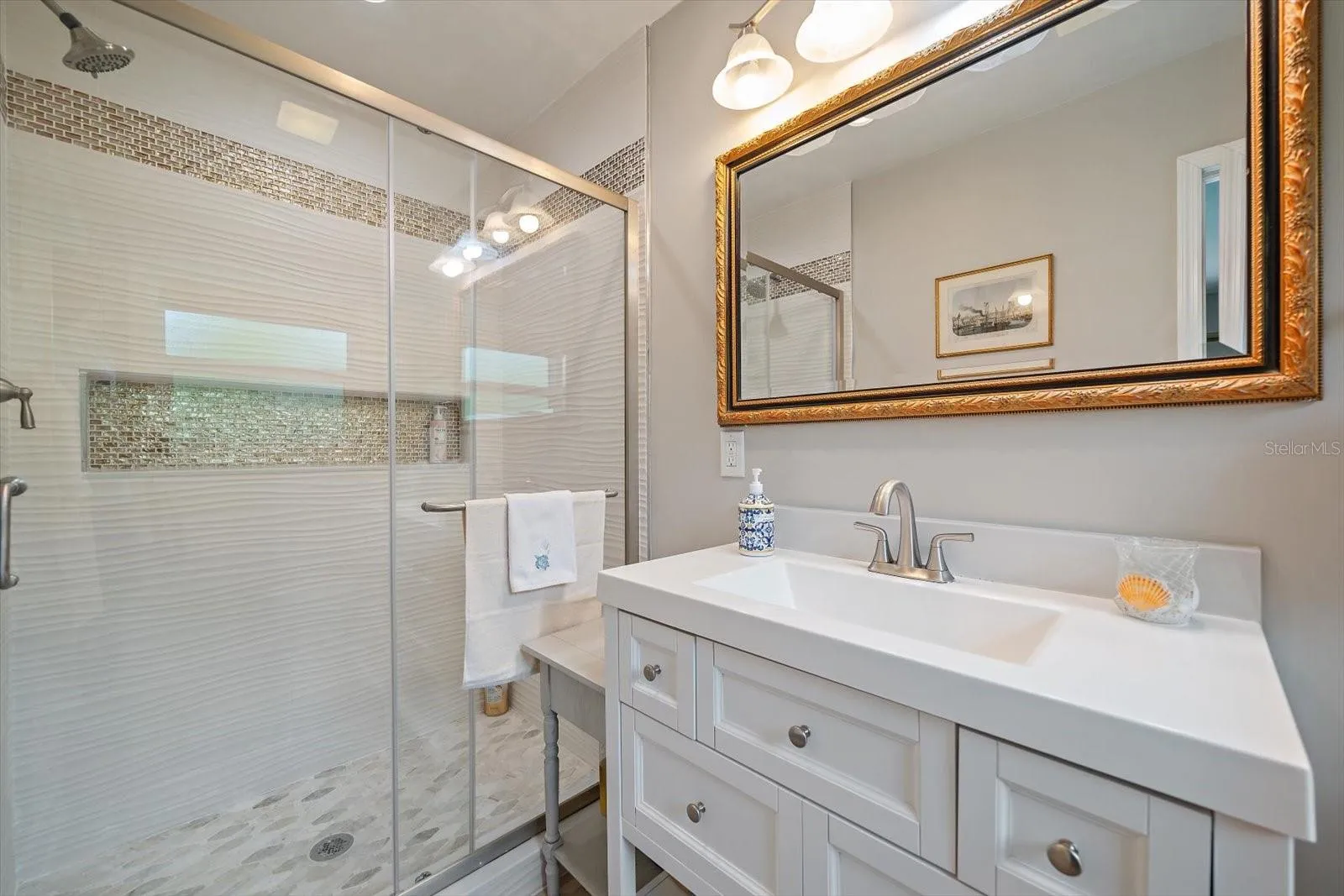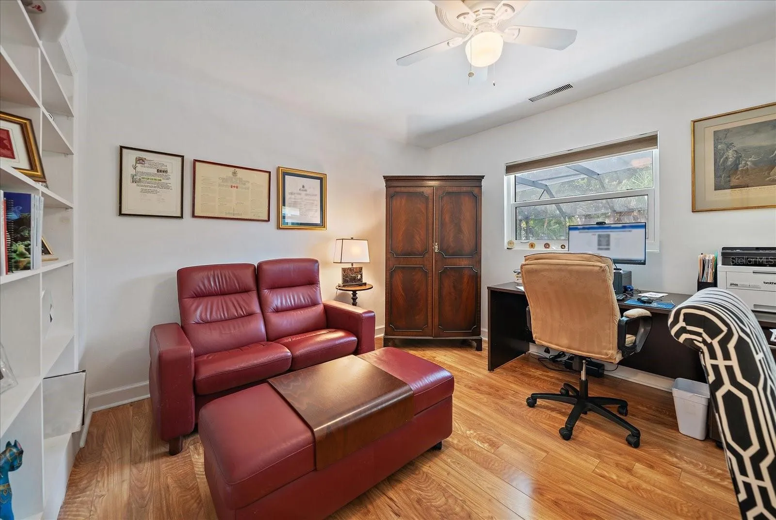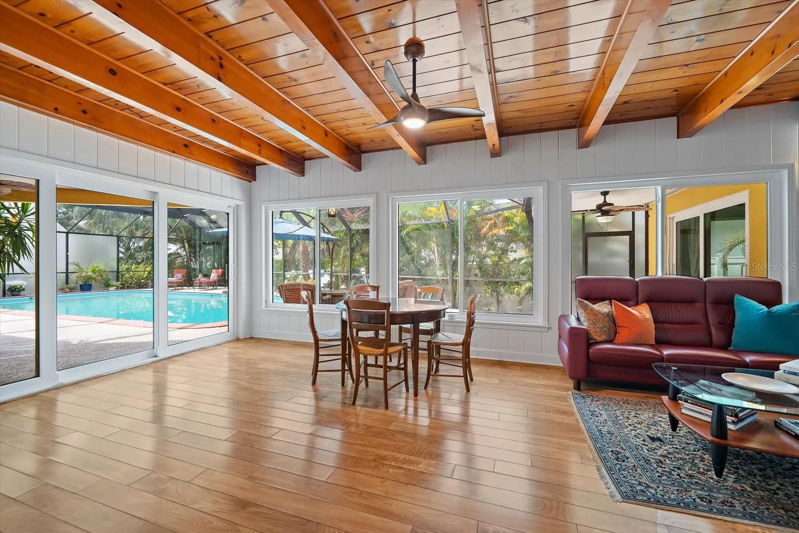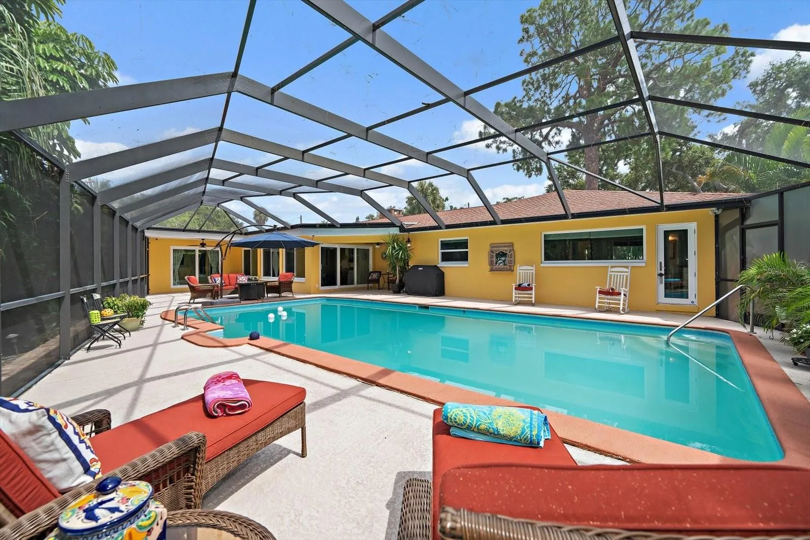 Move-in ready and perfectly positioned in the heart of beautiful Belleair, this stunning home offers refined Florida living just one block from the water and beautiful Winston Park, yet sits high and dry in a non-flood zone. Bursting with curb appeal, this meticulously maintained home features tropical native landscaping, a newly pavered front walkway and patio, and a welcoming entryway. Inside, a bright and open floor plan is enhanced by designer finishes, neutral luxury vinyl flooring, and a seamless flow between spacious living areas. The living room is filled with natural light, boasts electric blinds, and is anchored by a striking wood-burning fireplace, while the adjacent dining room connects effortlessly to the gorgeous white kitchen with stainless steel appliances, granite countertops, custom tile backsplash, wine fridge, and pass-through to the pool. The family room stuns with white paneled walls and soaring pine ceilings with exposed beams, creating an unforgettable atmosphere. Sliders open to a private, lush backyard oasis, where you will find expansive outdoor living that is a perfect blend of luxury and functionality, including 2 distinct covered areas, each offering a unique retreat, and a large shimmering pool with a 10 foot deep-end. Encasing the pool is a soaring screen enclosure providing protection from leaves and insects while maintaining an open, breezy atmosphere. The primary suite is a peaceful retreat with a walk-in custom closet, natural light, private glass door to the pool, and an ensuite featuring a furniture-inspired vanity and walk-in shower. Additional bedrooms are equally well appointed with custom closets, and built-ins. Extras include a 3-car garage with new custom flooring, impact windows and sliders, whole house generator, and electric blinds, Situated in one of Pinellas County’s most desirable neighborhoods, you’re just minutes from two private golf clubs, boutique shopping, local dining, and the area’s most beautiful beaches. Don’t wait—this Belleair beauty won’t last long!