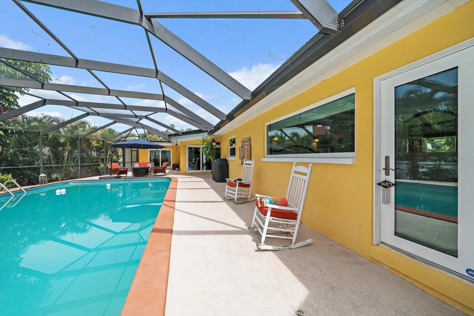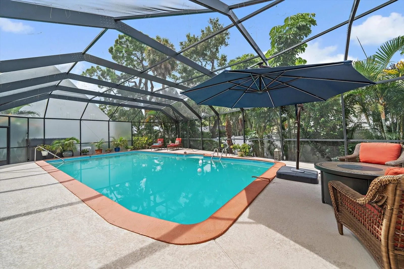 - In Ground, Gunite, Outside Bath Access, Screen Enclosure, Heated, Pool Sweep, Lap
