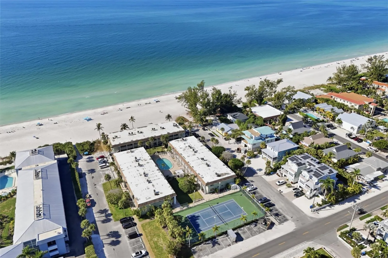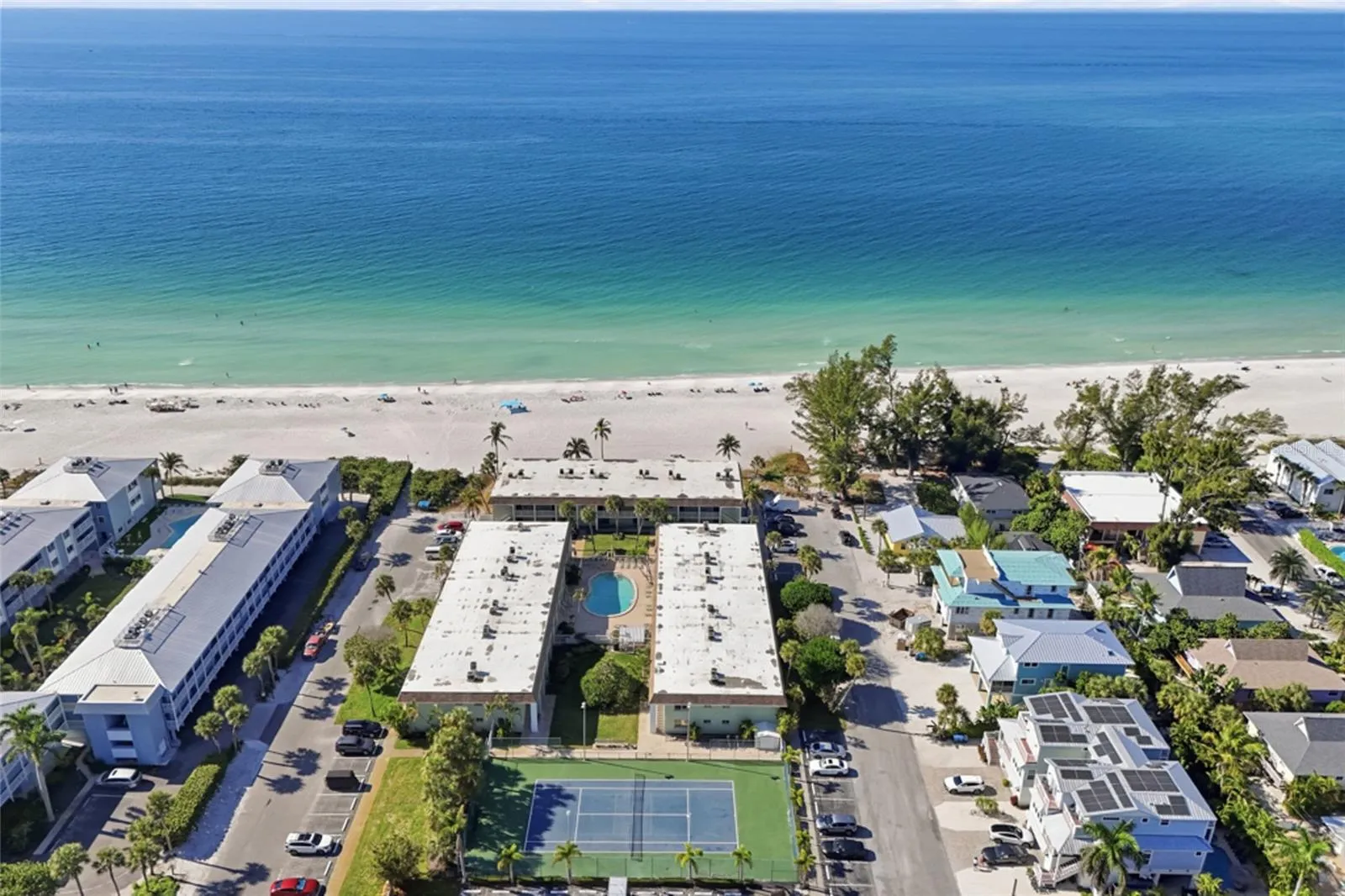 Welcome to this rarely available Gulf-front condo, a 2 bed/2 bath corner unit offering uninterrupted views of the Gulf from nearly every room. This condo was completely remodeled in 2025, with all-new A/C, water heater, kitchen, baths, flooring, and fixtures throughout. Impact sliders frame sweeping Gulf views and open to a private patio that melts into the sugar-white sand. This small 36 unit Gulf-front complex also features a spacious resort-style pool, tennis court, and a vibrant tropical landscape. A place where sunsets feel close enough to touch. These units hardly ever change hands, making this a true once in a lifetime opportunity. Call today for your private showing!