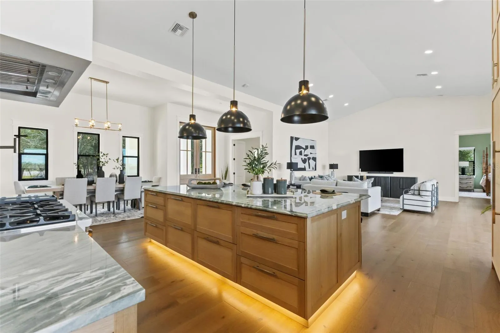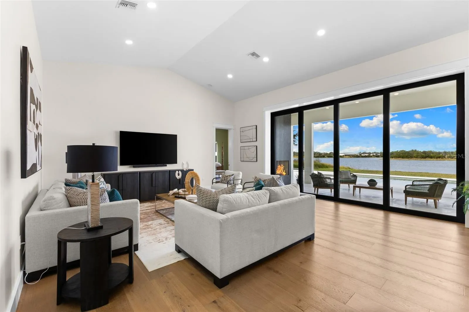 Welcome to an extraordinary 2025 luxury modern farmhouse estate, offering 3,591 square feet of refined heated living space and 5,595 total square feet of thoughtfully crafted design. Set on an expansive lakefront property, this residence blends modern elegance with timeless farmhouse character to create a lifestyle of comfort, sophistication, and privacy.A striking aluminum roof and an impressive 50-foot covered front porch set the tone upon arrival. Inside, soaring 14-foot ceilings and a dramatic cathedral ceiling over the living room and kitchen create an expansive, light-filled atmosphere. Custom hardwood floors, premium stone selections, and meticulous craftsmanship elevate every inch of the interior.The chef’s kitchen is a true centerpiece of the home, curated for both beauty and performance. It features premium appliances, including a 48-inch gas range with hood and pot filler, a Sub-Zero refrigerator and freezer, and a dedicated hot beverage station. Solid wood cabinetry is enhanced with soft LED accent lighting at the kick plates and beneath the upper cabinets, adding a warm and luxurious glow. A spacious walk-through pantry with its own sink provides added convenience and exceptional functionality.This estate offers four well-appointed bedrooms, five full baths, a private study or den, and a large bonus/play area ideally situated near the secondary bedrooms—perfect for families or guests. A multi-zoned air-conditioning system ensures personalized comfort throughout the home.The outdoor living experience is truly exceptional. A stunning lanai features a real wood-burning fireplace and overlooks a fully automated heated pool and spa. Beyond the pool lies approximately 500 feet of deeded water frontage along a breathtaking 48-acre lake. Here, you can build your own private dock and enjoy boating, jet skis, fishing, and the unparalleled beauty of lakeside living.For equipment, recreational vehicles, or property use, the estate includes two separate garages: a traditional two-car garage and an oversized one-car garage ideal for storing tools, machinery, or ATV’s to run the property with.A rare and unique benefit of this location is its adjacency to the Wauchula Municipal Airport, which borders the lake—an exceptional feature for aviation enthusiasts seeking convenient, private access. Despite the tranquil setting, the home remains only 20 minutes from the Lakewood Ranch area for grocery stores, dining, and conveniences. Bradenton is roughly 35 minutes away, Sarasota approximately 40 minutes, and Anna Maria Island’s world-class Gulf beaches just 50 to 55 minutes from your doorstep.This luxury modern farmhouse estate offers an unmatched blend of fine craftsmanship, elevated amenities, expansive lakefront living, and an ideal location—an extraordinary opportunity in beautiful Myakka City.
