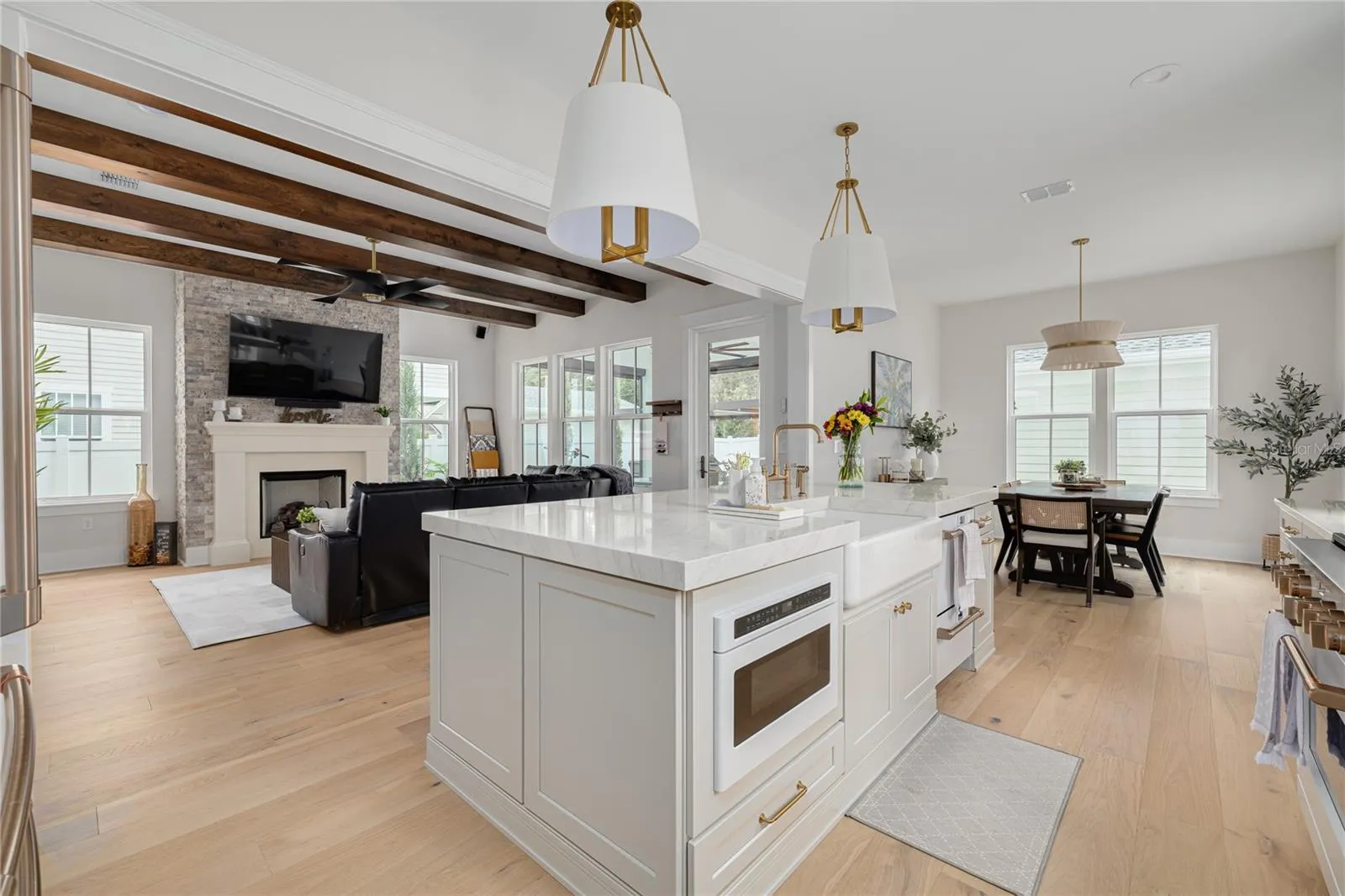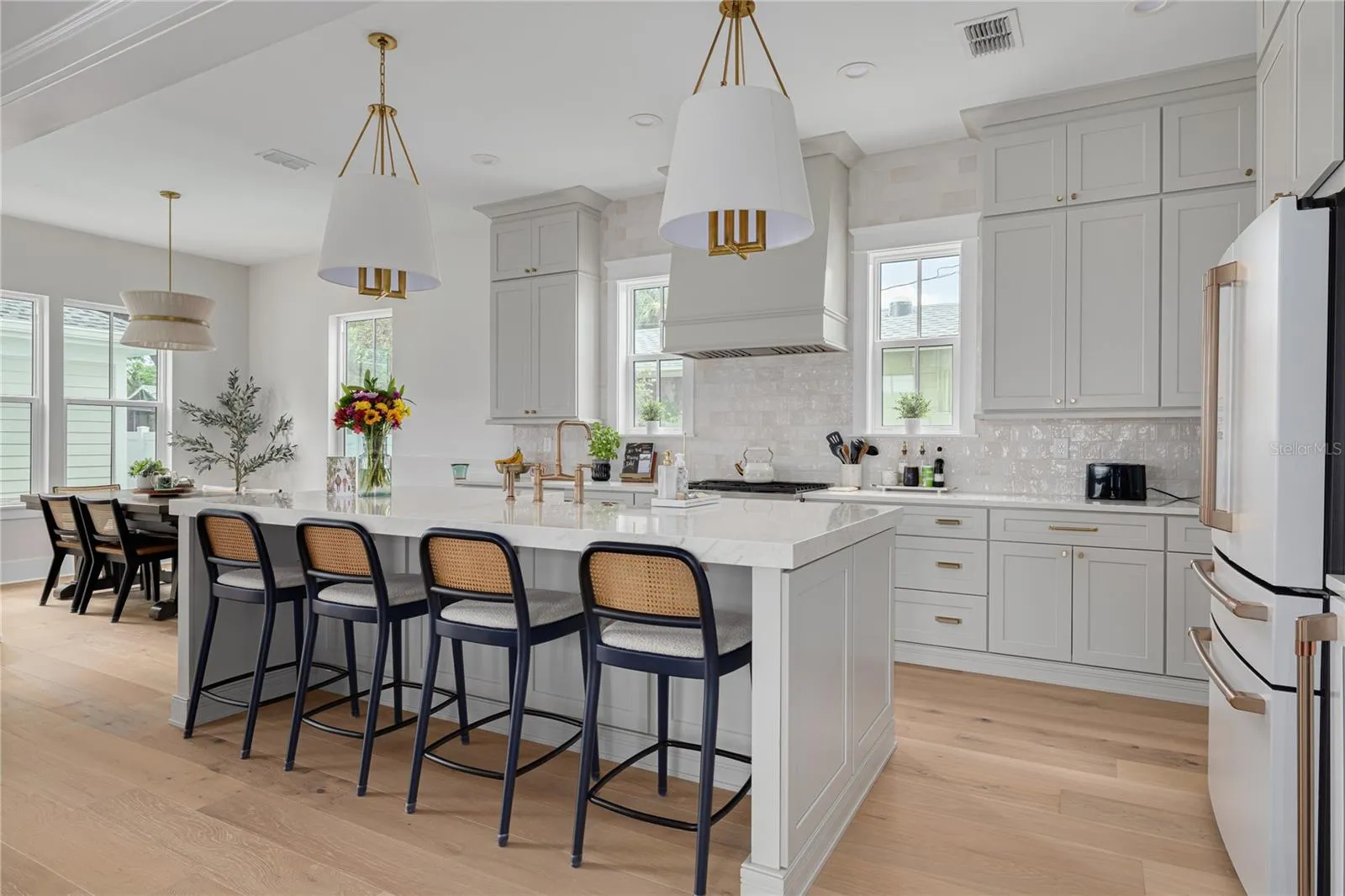 Built just one year ago and thoughtfully enhanced during construction, this stunning Canopy Builders home blends timeless design with elevated upgrades rarely found in standard new builds. Offering 4 bedrooms plus an office and loft, along with 3 full bathrooms, it’s designed for both everyday living and effortless entertaining. As with all Canopy homes, you’ll appreciate the quality craftsmanship with Hardie plank siding, impact-rated windows, 10′ ceilings on the main level, 9′ ceilings upstairs, covered front and rear porches, and a beautifully designed laundry room with extensive cabinetry. During completion, the builder added numerous premium upgrades including striking exposed wood ceiling beams in the family room, wood ceilings on both the front and back porches, automatic retractable screens on the back porch, natural gas hookups for grilling and the outdoor gas fireplace, a beautifully finished private backyard with pavers, a louvered pergola, landscape lighting, and a tranquil nighttime ambience. Additional enhancements include an epoxy-finished garage floor, a whole-home water softener, high-grade Café appliances—GE’s premium line known for customizable finishes—extra rear parking, and exceptional designer-selected finishes throughout. Inside, you’ll find engineered hardwood flooring, 8’ shaker-style interior doors, an expansive kitchen island with a 4” quartz countertop, tile backsplash with vent hood, a 36” freestanding natural gas Café range, Café premium appliances including a wine cellar, designer lighting and hardware, a natural gas indoor fireplace, and a gas tankless water heater. The spacious owner’s suite offers two large custom walk-in closets, dual vanities, a free-standing soaking tub, and a walk-in shower. Situated on a high-and-dry, non-flood zone lot just minutes from Downtown St. Petersburg, I-275, and the Gulf Beaches, this exceptional home checks every box. Don’t miss your opportunity—schedule your private showing today and step into your future home!