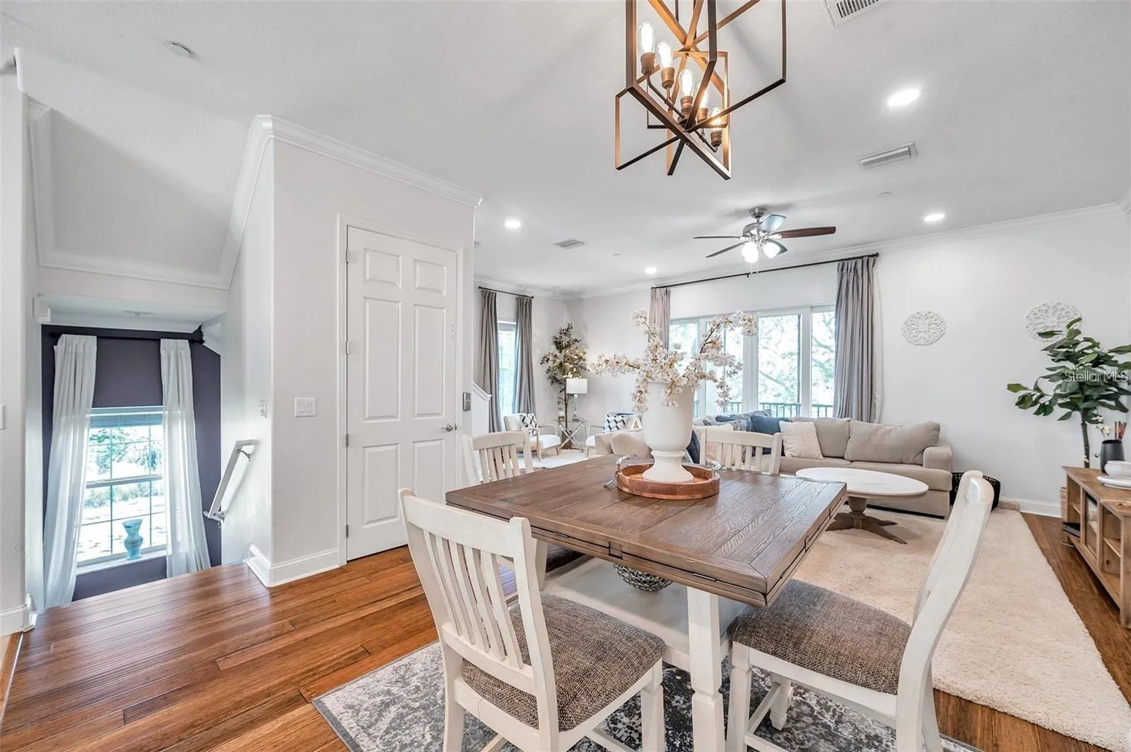 - Ceiling Fans(s), Elevator, Crown Molding, Open Floorplan, Walk-In Closet(s), Living Room/Dining Room Combo, Eat-in Kitchen, Kitchen/Family Room Combo, Split Bedroom, Window Treatments, High Ceilings, Stone Counters, Solid Wood Cabinets, PrimaryBedroom Upstairs