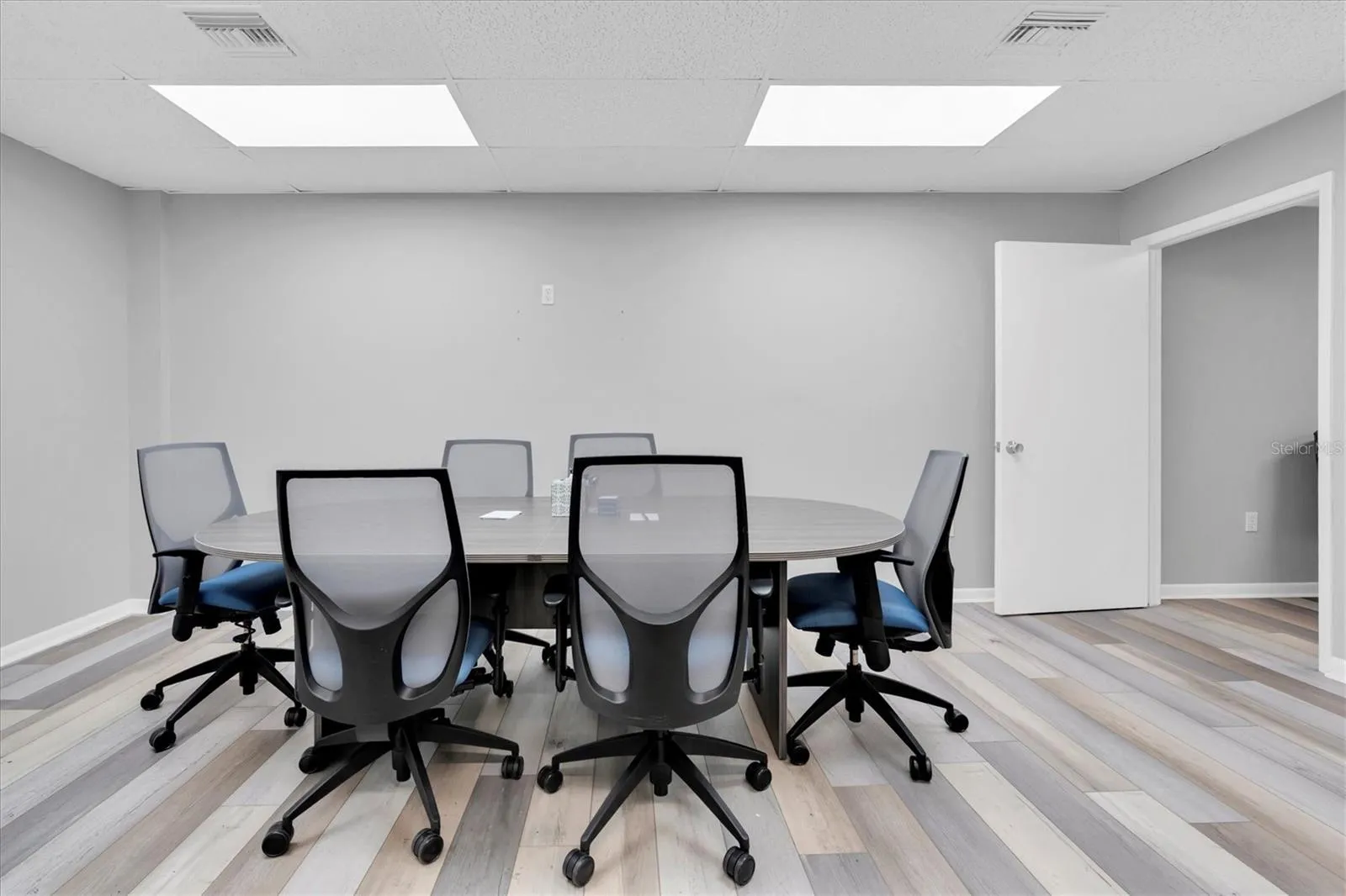 Turn-key professional / medical-ready office condo in the established Courtyard Centre / Courtyard Medical complex on Curlew Rd in Dunedin. This 1,575± SF condo offers a modern, flexible layout and medical-ready infrastructure, making it ideal for professional office, healthcare, or wellness users who want both immediate usability and future clinical build-out potential. The interior was completely remodeled in 2021 with clean, contemporary finishes that project a professional image, and a new roof was installed in November 2025, significantly reducing near-term capital expenditures and providing long-term peace of mind. The space is thoughtfully configured with a welcoming reception and waiting area, multiple private offices/flex rooms, a dedicated conference room for meetings or consults (including telehealth or team collaboration), a kitchen/break room for staff, and two restrooms, allowing for convenient staff and client/patient use. One of the key advantages of this condo is its medical-ready infrastructure: there are five capped wet locations with existing plumbing in place, allowing for relatively easy addition of sinks or other wet areas as part of a custom build-out. This makes the property especially attractive to medical, dental, med spa, therapy, or other clinical practices looking to design their own exam/treatment rooms without starting from scratch. Large parking lot is an added bonus. Located on Curlew Rd with quick, convenient access to US-19, the property benefits from strong regional connectivity to Dunedin, Palm Harbor, Clearwater, and the broader North Pinellas market. Ongoing US-19 corridor upgrades and improvements further enhance traffic flow, visibility, and long-term positioning in this high-demand area.