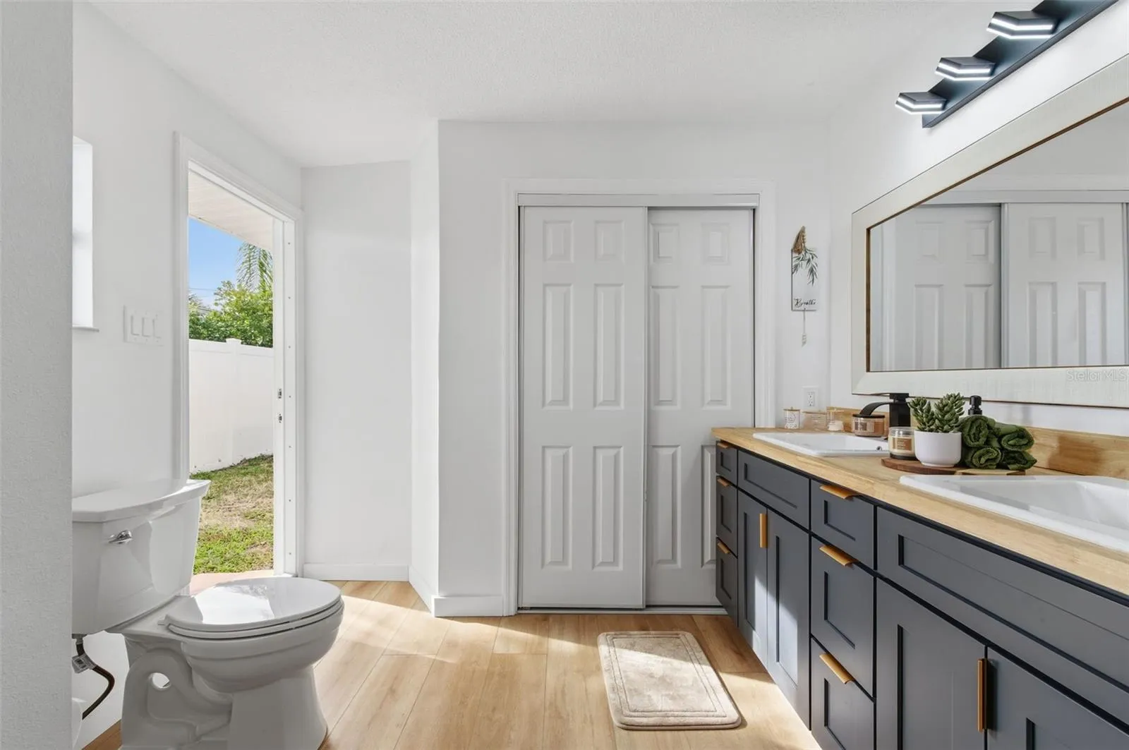 Welcome to 2,040 square feet of thoughtfully remodeled living in one of Central Florida’s most sought-after coastal areas — Dunedin. This solid block home offers 4 true bedrooms, 2 full bathrooms, 2 spacious living rooms, and a large dining room with space for gatherings of any size. The private entry sits along the right side of the home. A gated courtyard leads to the front door and creates a secure space for pets. Inside, natural light fills every room. Both living rooms offer flexible layout options. The rear living room includes a wood-burning fireplace and overlooks the pool. The kitchen is a standout. Oversized and fully updated, it features abundant NEW cabinetry, NEW appliances, expansive butcher block counters, and a deep chef’s sink. The master bedroom suite is generously sized with room for a sitting area, a walk-in closet, and an updated en-suite bathroom with double sinks, storage, a walk-in shower, and direct access to the side yard that can serve as a pool bath if desired. The hall bathroom is beautifully finished and offers excellent storage. Three of the four bedrooms include closets with built-ins. The fourth bedroom has windows facing both the backyard and the front courtyard. Ideal for a home office. Step outside to a fully fenced backyard with a swimming pool, space for gardening, room to play, and a large shed. Additional features include a one-car garage with laundry area, a new garage door and opener, quality tile flooring throughout, and no HOA or CDD. The location elevates this home even further. Nestled within the Baywood Shores area, you are near some of Dunedin’s best amenities. The Pinellas Trail and Dunedin Causeway are just moments away for walking, biking, or sunset views. Downtown Dunedin’s restaurants, shops, and breweries are only minutes from your door. Golfers will appreciate having the newly renovated, historic Donald Ross-designed Dunedin Golf Club super closeby. A bright, spacious, fully remodeled home in a premier Dunedin location. Move-in ready!