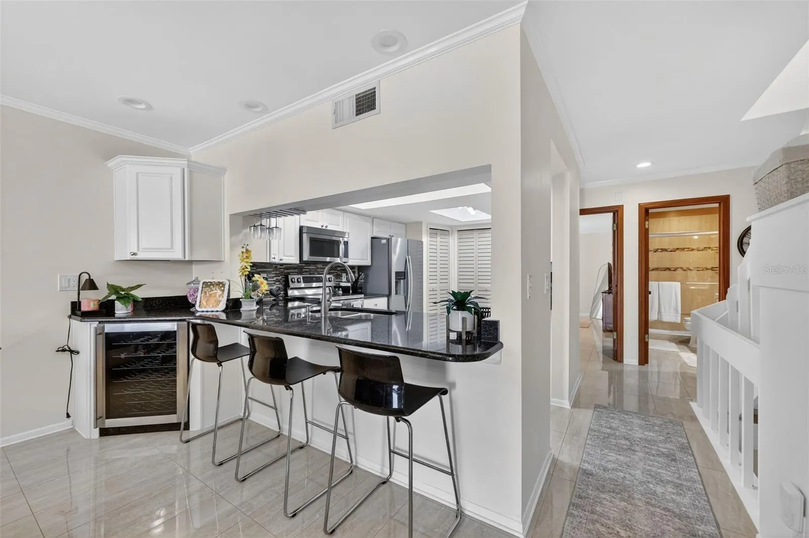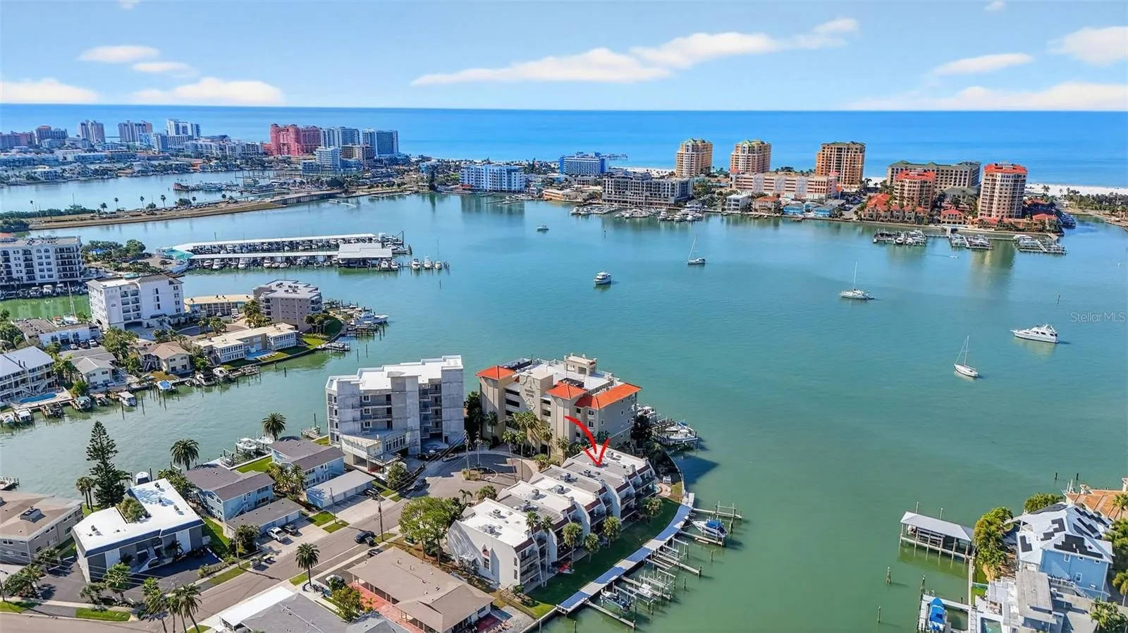 Beautiful views and Boat Slip with 12,000 lb Lift Included! Expansive waterfront townhome offering 3 bedrooms and 3 full bathrooms on desirable Island Estates. Enjoy direct water views of Mandalay Channel and Clearwater Beach from the main living area and covered balcony. The open floor plan features a living/dining combo with wood-burning fireplace and sliders overlooking the water. Updated kitchen with granite countertops, stainless appliances, and in-unit laundry.The First-floor bedroom with en-suite bath provides an ideal guest space. Spacious primary suite includes a renovated bathroom with dual sinks, walk-in shower, custom cabinetry, and upgraded walk-in closet and a private balcony to enjoy the stunning views. The Second bedroom upstairs also offers an updated en-suite bath, with walk-in shower and generous storage. The tandem garage has been partially converted into a versatile room with a partially finished bath. Recent improvements include Roof (2021), Water Heater (2021), Electrical Panel (2019), Garage Door Opener (2022), and Disposal (2023). Assigned boat slip with lift offers quick access to the Intracoastal and Gulf of Mexico. Located close to Clearwater Beach, shopping, dining, marina, and Island Estates conveniences. Enjoy waterfront living and coastal recreation in a highly sought-after community.Easy commute to Tampa International and Clearwater/St. Pete airports.