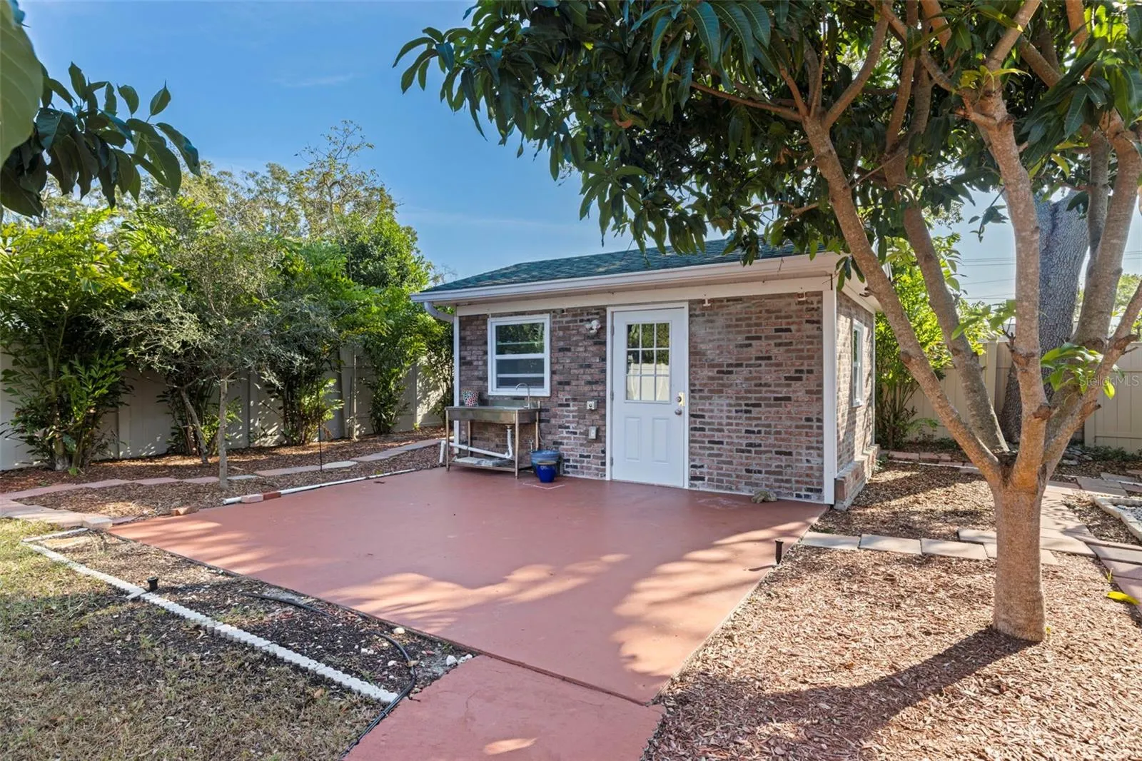 Live the Florida lifestyle in this spacious mid-century pool home with direct golf course views in Tampa’s North Side Country Club community, with views of the beloved Babe Zaharias Golf Course. This home offers the perfect blend of character, space, and opportunity. Built in 1954, this home is being sold by the second ever owner! While cosmetic updates will allow you to make it truly your own, it has been maintained where it matters most. The HVAC is a 2019, the whole home has been replumbed, as well as rewired, and 36 solar panels that keep electric costs around $15 per month. With the essential systems already taken care of, you can put your energy into personalizing this mid-century home to make it uniquely yours. The home unfolds into a layout designed for connection: formal living and dining rooms, plus views of the pool and the fairway beyond. The kitchen features solid wood-core cabinetry, offering durability and charm with the potential to be refreshed to your taste. Throughout the home, the thoughtful floor plan supports everyday living as well as effortless entertaining. The accent wall made of real stone and the Ben Franklin wood stove add a warm, cozy focal point that sets this home apart from today’s newer builds. The split-bedroom layout provides privacy, and storage is abundant. Practical upgrades include an ADT security system, irrigation system, and the home is wired for a generator in case of power outages. Outside you can embrace the Florida lifestyle: a screened pool for sunny afternoons, a fully-fenced backyard perfect for pets or play, and avocado and mango trees that bring a touch of the tropics to your own backyard. A rarity in this neighborhood, the expanded, powered studio-style shed opens up endless possibilities—an art studio, home gym, workshop, office, game room, or workshop. Set in a sought-after community close to local dining, shopping, and everything Tampa has to offer, this home is more than a place to live, it’s a lifestyle waiting for your personal vision.