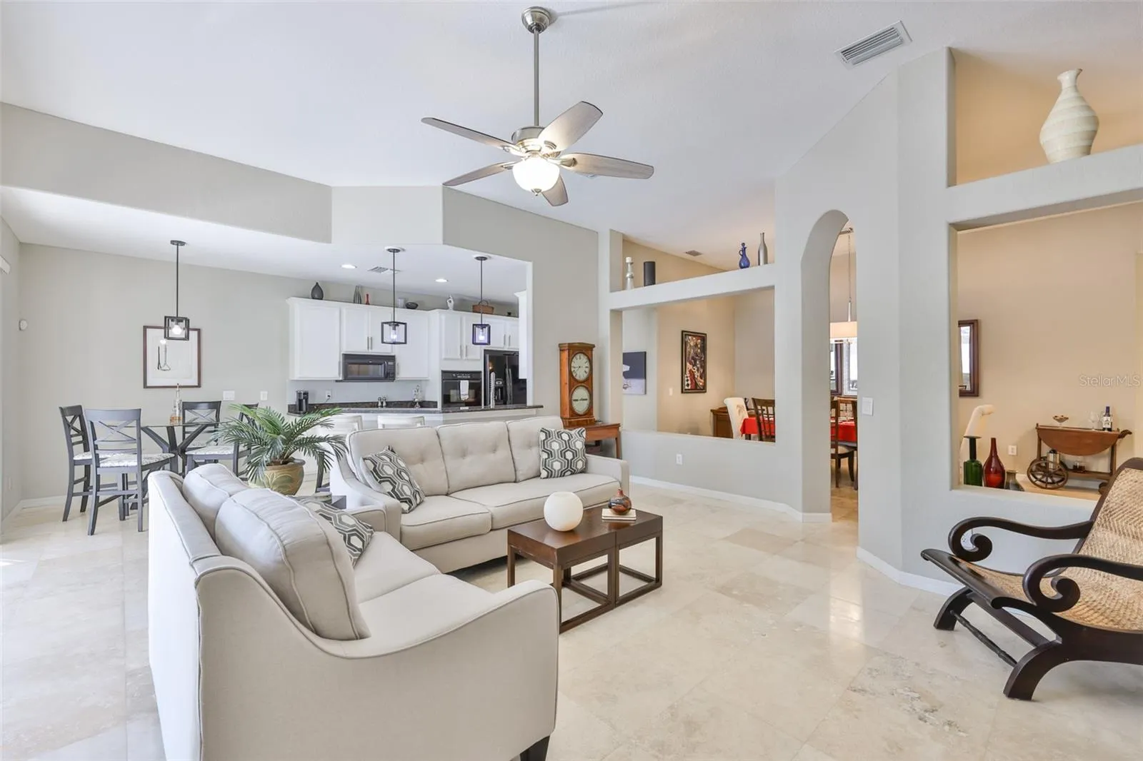 A BEAUTIFULLY MAINTAINED FLORIDA RETREAT awaits you at this inviting 3-bedroom, 2-bath home with an office/den on Pinebreeze Drive. From the moment you arrive, the pride of ownership is unmistakable. Step inside and you’re greeted by rich travertine flooring that flows gracefully through the main living areas, instantly setting a tone of warmth and elegance.