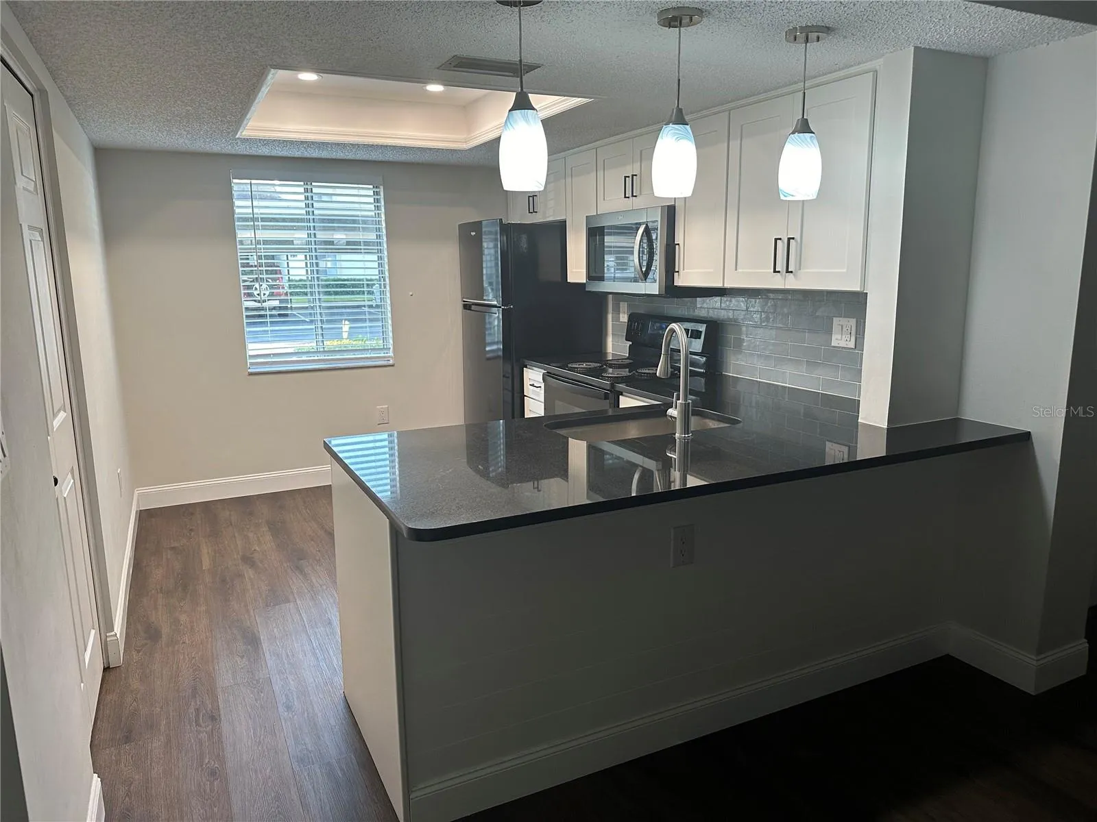 Updated 2-Bedroom, 2-Bath Ground Floor Condo with Patio in Gated East Lake Woodlands! This beautifully updated 2-bedroom, 2-bath condo is located in the desirable gated community of East Lake Woodlands. Featuring newer HVAC and a hot water heater (just 3 years old), this home offers modern comfort with luxury vinyl flooring throughout, including the screened lanai. The open-concept great room features sliding glass doors that lead to the lanai, while the primary bedroom also boasts sliders for easy access. The spacious primary suite includes two large walk-in closets, a linen closet, and a lovely ensuite bath. The second bedroom offers a full wall of closets and is conveniently located near the hall bath. For added convenience, the lanai houses a washer and dryer in a dedicated laundry closet. Enjoy outdoor living with a separate patio perfect for grilling, or take advantage of the community amenities, which include a pool and tennis courts. Nature abounds with meandering walking trails throughout ELW! This condo offers the perfect blend of style, comfort, and leisure in a secure, gated environment, close to all amenities and our famous Gulf Beaches and 2 airports!