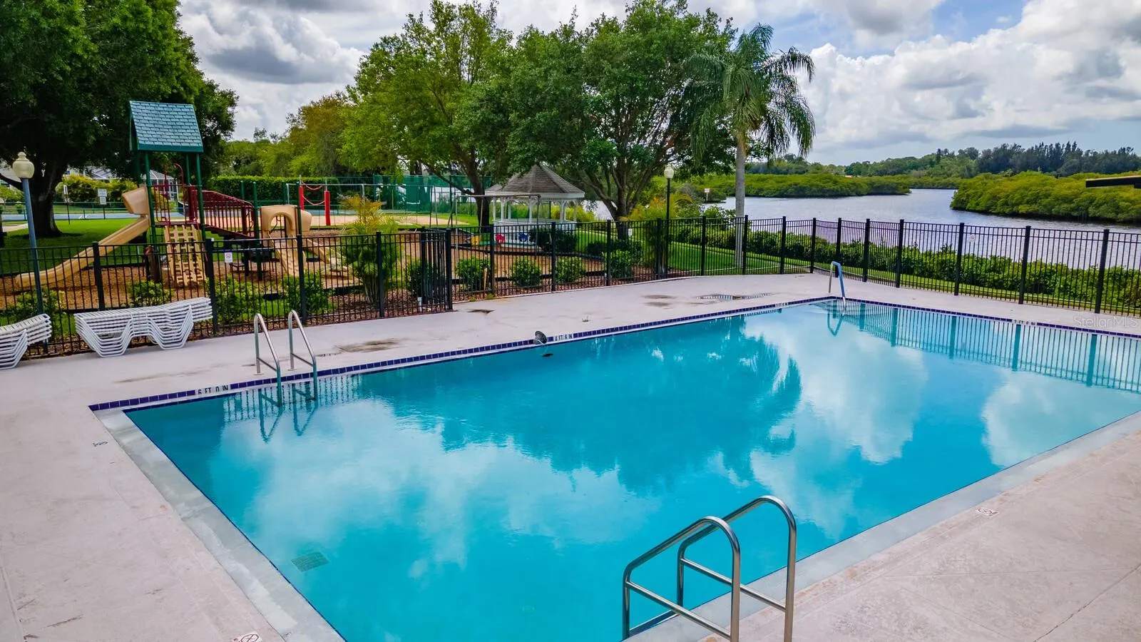 POOL HOME ACROSS THE BRADEN RIVER — AVAILABLE JANUARY 1, 2026. This 3-bed, 2-bath pool home sits on one of the best streets in Braden River Lakes—directly across from the Braden River, not in a flood zone, and just steps from the community pool, tennis and volleyball courts, BBQ gazebos, playgrounds, and the kayak launch ramp! Inside, you’ll find plantation shutters, generous living spaces, and a large master suite with a garden tub and separate shower. Major systems have been updated, including the roof, A/C, and water heater. Braden River Lakes is prized for its school district, scenic lakes, mature trees, and abundant wildlife. Dolphins and manatees are often spotted from the community waterfront areas. The location is exceptionally convenient: minutes from I-75, Publix, pharmacies, banks, restaurants, and major shopping options such as Walmart, Costco, and Home Depot. Gulf beaches are just 25 minutes away. *Note: Black kitchen appliances will be replaced with stainless steel.