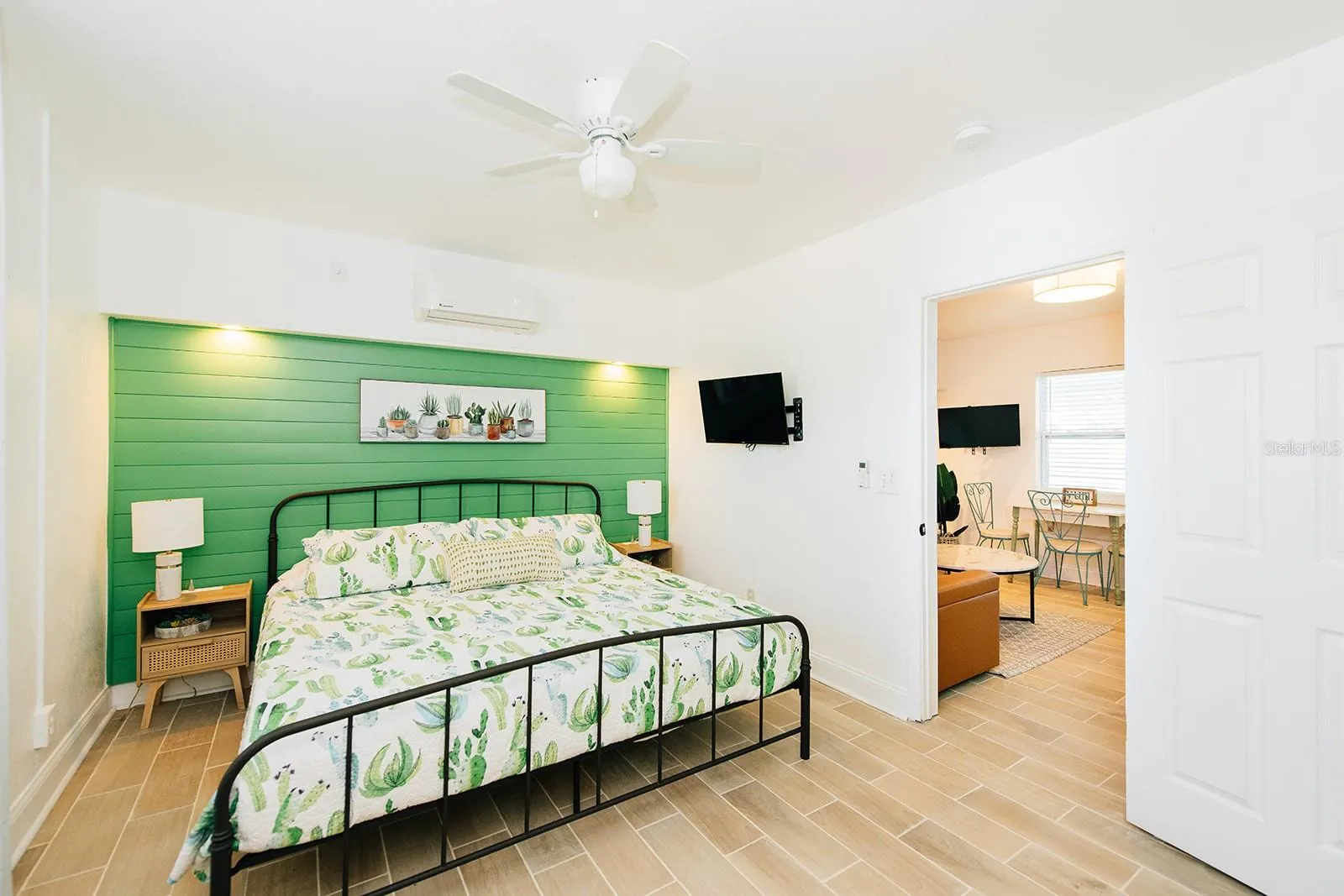 This newly renovated, fully furnished, and fully stocked 1 bedroom/1 bath rental offers a bright, comfortable, and highly convenient living experience in the heart of St. Pete Beach—ideal for travel nurses, remote workers, those relocating, or families needing temporary housing. Available for short-term, mid-term, or long-term stays, the apartment is part of a quadplex where each unit features its own uniquely curated theme, and offers a thoughtfully designed interior with a full kitchen equipped with cookware and essentials, a spacious living area with a sofa and smart TVs, high-speed Wi-Fi for remote work, and a modern bathroom with double rainfall showerheads. Sleeping accommodations include a king bed and a sleeper sofa, all with comfortable memory-foam mattress. A professional commercial laundry service provides fresh linens at move-in and move-out for added convenience. The gated outdoor spaces are shared with other units and include turf, a picnic area with string lighting, and an outdoor shower—creating a relaxed and inviting environment for unwinding outside. The location is exceptional: less than a mile to both Upham Beach and Sunset Beach, and walkable to restaurants, coffee shops, a convenience store, pizza takeout, local bars (including a microbrewery next door), and the St. Pete Beach Community Center with park amenities, pool access, and EV charging stations. Monthly utilities are included, and on-site laundry is available along with a laundromat next door. The property is clean, well maintained, and professionally managed to ensure a comfortable and seamless stay. Outdoor areas are shared, and pets may be considered with approval. This bold, bright, cactus unit – lovingly referred to as “Fiesta Siesta” – provides a turnkey option for anyone seeking an easy transition into the St. Pete Beach lifestyle with everything needed for a comfortable extended stay.