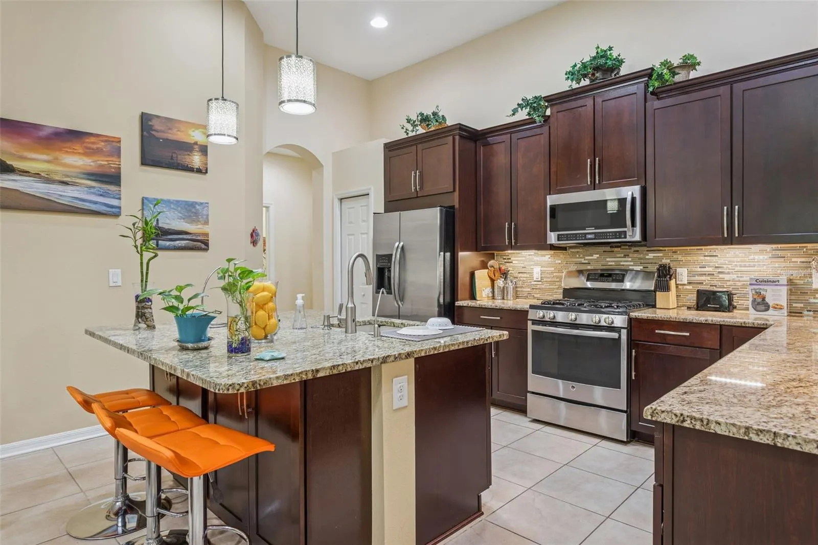 Come see this Avelar Creek 4 bedroom, 3 bathroom fully furnished home before it’s gone! This home sits in the quiet neighborhood of Avelar Creek that comes with a community pool and great neighbors! The four bedroom home has ceramic tile and luxury plank flooring throughout the single story home. The meticulously maintained home has an inviting and open living room concept shared with the gorgeous kitchen. The kitchen features stainless steel appliances along with a gas stove which is hard to find here in Florida. The bedrooms are a true split plan with the primary bedroom to one side of the house, and the two guest wings split to the other side of the home. The screened lanai is quiet spacious and looks out to the fully fenced back yard with fruit trees that produce fruit for the resident. The property lawn care is included in the rents, just pick the fruit when it’s ready! The home is conveniently located between I-75 and SR-301 for easy access to the interstates and retail shopping centers. Come see this home today!