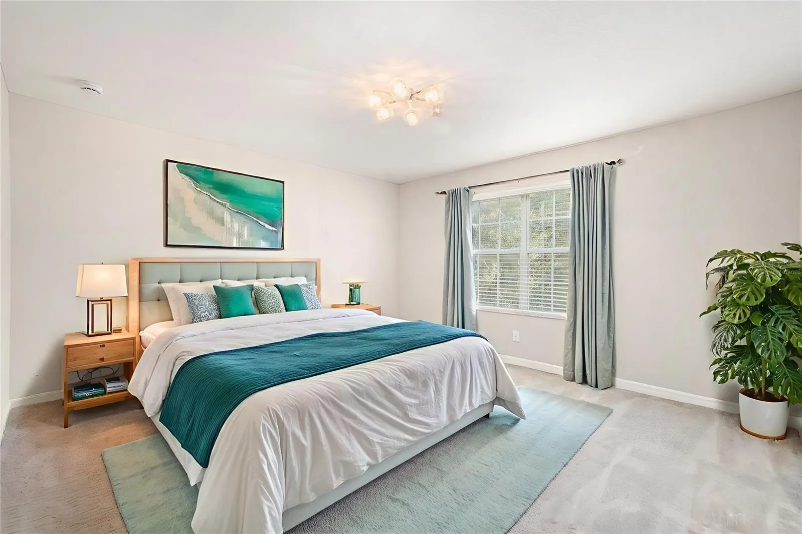 One or more photo(s) has been virtually staged. Welcome to the Club Manor Townhomes in Grand Hampton, where gated, low-maintenance living meets comfort and style! Offering fresh neutral paint and brand-new carpet, this turnkey unit is ready to become the home you have been dreaming of. Perfectly placed on a cul-de-sac lot with conservation views and an extended driveway, the freshly painted exterior and HOA-maintained landscaping create an inviting first impression. Inside, an arched foyer filled with natural light leads to a spacious living area with high ceilings and sliding doors to the serene screened patio. The kitchen features white cabinetry, granite counters, stainless steel appliances, recessed lighting, and a breakfast bar, with an adjacent dining area so your home chef never has to miss a moment. Upstairs, a flexible loft is ideal for an office or workout space to suit any of your needs. The primary suite offers a large walk-in closet and a spa-inspired ensuite with dual sinks, a garden tub, and a glass shower. Two additional bedrooms, a full bathroom, and upstairs laundry room add everyday convenience. Grand Hampton’s resort-style amenities offer both security and entertainment for the whole family with a 24-hour guard gate, clubhouse, fitness center, playgrounds, lake access, heated lagoon pool with slide, lap pool, and tennis and basketball courts. Convenient to I-75 and I-275, this home is moments from AdventHealth, PHSC, AdventHealth Center Ice, The Shops at Wiregrass, and Tampa Premium Outlets. This move-in ready beauty won’t last long, schedule your showing today before it’s too late!