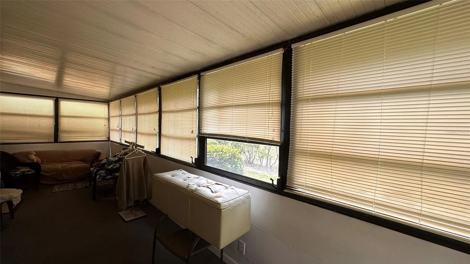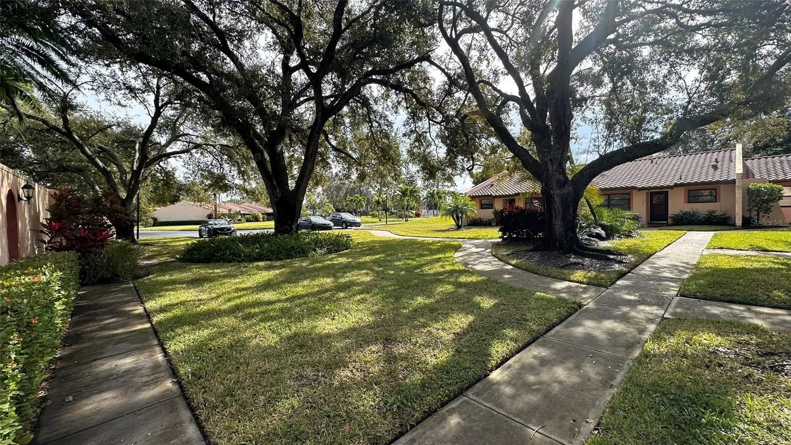 Relish your Florida Lifestyle located in central Seminole just minutes from the pristine Suncoast Beaches and popular downtown St. Petersburg. Conveniently located near dining, shopping, venues and community events with a vibe for Peaceful, green, activities, and connected to the broader Tampa Bay area without the big city hustle. Adjacent to Seminole Lake Park. Timberwoods Condo community is a life in a Parklike setting with Mature Oaks, Swaying Palms, and Quiet Walks on the expansive property with pond water views, spacious Clubhouse, sparkling pool, tennis and pickleball. Underground utilities in this Spanish style, tile roof villas and townhomes in this picturesque village. Convenient parking carports are enclosed on three sides, and your space is attached to your corner garden home. This end unit is bright and airy with cathedral great room ceiling with sliding glass door, inside laundry area, tile and laminate floors throughout. The oversize enclosed lanai Florida Room is wall to wall windows and over two hundred square feet, double the size of others with a private door to the backyard. The interior heated square feet is 760, which is larger than other 1 bedroom, 1 bath. Extra large closets and a convenient storage closet is on the covered front patio. Your covered parking is directly next to this end unit. Appliances are approximate: Water heater 1.5 years old, HVAC 4 years (condenser newer), elect. service 9 years, disposal 9 years. Kitchen and bath are original and a blank slate for new owners as-is or your dream project upgrades when convenient. This Florida location wont last!