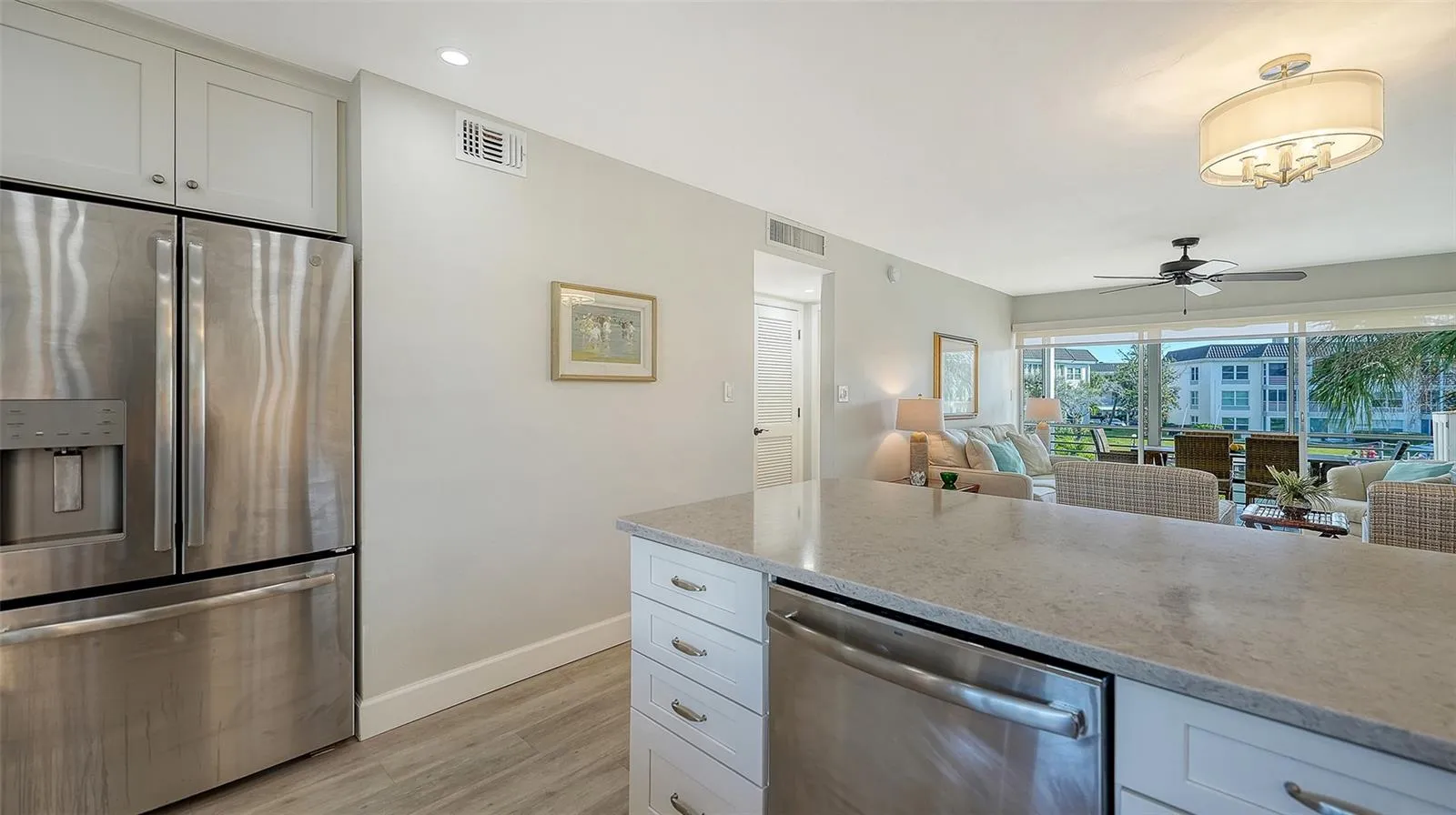 Longboat Harbour is one of the best gated complexes on Longboat Key offering a marina with deep sailboat water and deeded beach access pavilion. Each boat slip is equipped with water and electric for a nominal fee first come first serve. Extensive amenities including four heated pools, kayak storage and launch area, fitness center, sauna, clubhouse, billiards, card room, tennis/pickleball courts, shuffleboard, putting green, woodworking shop, art studio, library and walking paths. Community newsletter with planned activities and information. Assigned covered parking and elevator take you to this beautiful 2 bedroom, 2 bathroom condo that is move in ready and sold turnkey furnished. Brand new kitchen with stainless steel appliances and beautiful backsplash with window to view gorgeous Gulf of Mexico sunsets has breakfast bar, cabinet pantry, utility cabinet, wine storage and glass display cabinet. The open floor plan allows you to bring the outdoors in through the sliding glass doors from the living room to the lanai. Entertain your guests in style. Primary bedroom has ceiling fan, dual closets, tv, and windows for tranquil sunrises over the marina. Primary ensuite bathroom has new vanity, 3 linen closets, door to water closet with shower. Guest bedroom has built-in closet and windows for gorgeous sunset views. Gorgeously updated guest bathroom has vanity and tub with shower. Stackable washer and dryer closet. Start your day with breakfast on the tranquil screened lanai watching the sunrise and sealife, head to the beach or any of the amenities for the day and end your day on the beach or at the community lounge area right outside your front door for magnificent Gulf of Mexico sunsets. You won’t find a nicer complex with so much to see and do on the island! Come make this beautiful condo your retreat today!