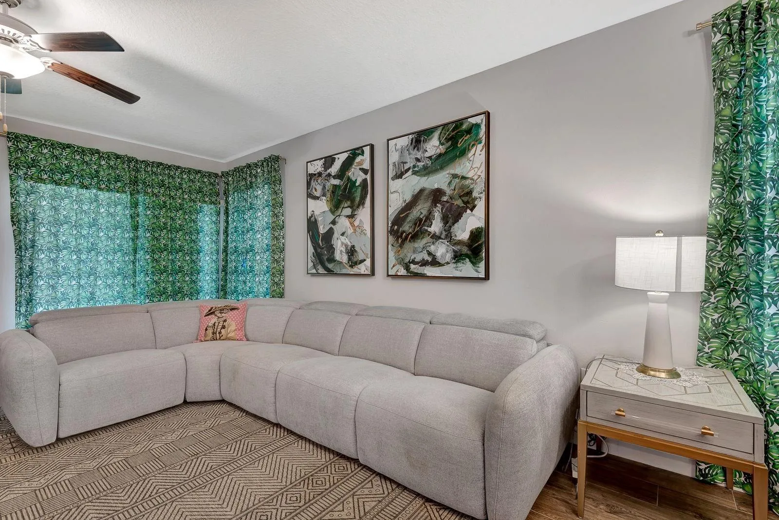 Welcome to a truly unforgetable villa where every detail has been thoughfully curated by a professional interior designer. This stunning 2-bedroom, 2-bathroom home offers a level of beauty and comfort that immediately captivates you the moment you walk through the door. Each bedroom features its own custom drapery set, carefully matched with the bedding, pillows, furniture tones and lamps-creating two distinct, serene spaces that feel like boutique hotel suites. The living room opens to a modern, beautifully updated kitchen equipped with everything a homeowner needs to craft the perfect meal. The newly installed refrigerator enhances the entire home’s design, blending seamlessly with its stylish decor. A spacious separate office offers plenty of room for productivity or creativity. Step outside to your cozy screened porch furnished with comfortable outdoor seating-your perfect spot for morning coffee or evening relaxation. This villa is located inside an active adult gated community that offers world-class amenities, including a stunning, modern club house with multi-purpose rooms, a state of art fitness center, a billiard room, tiki bar, a beautiful resort style pool with expansive lounges and seating areas. The club includes bocce, volleyball and pickleball courts. There is a dog part and scenic walking trails. The crown jewel is increadible MetroLagoon, a one-of-a -kind attraction featuring sand beaches, crystal clear water, giant water slide, floating obstacle course, paddleboards, kayaks and endless activities. Its a five acres of pure fun, fitness, and Florida sunshine! There are additional community benefits: Cable TV, high speed internet, landscaping, irrigation, property painting, and all exterior community maintenance-including the beautiful club house amenities and the incredible MetroLagoon-are fully included in the fees. Enjoy an effortless lifstyle where everthing is taken care for you! Live every day in absolute paradise, surrounded by fun activities, resort-style amenities and the peace of mind that comes with safe, carefree living. All of this can be your for $298,000- an incredible opportunity to live the Florida lifestyle you’re dreamed of. Come see this unique, professionally desigend villa in person and fall in love with every detail.