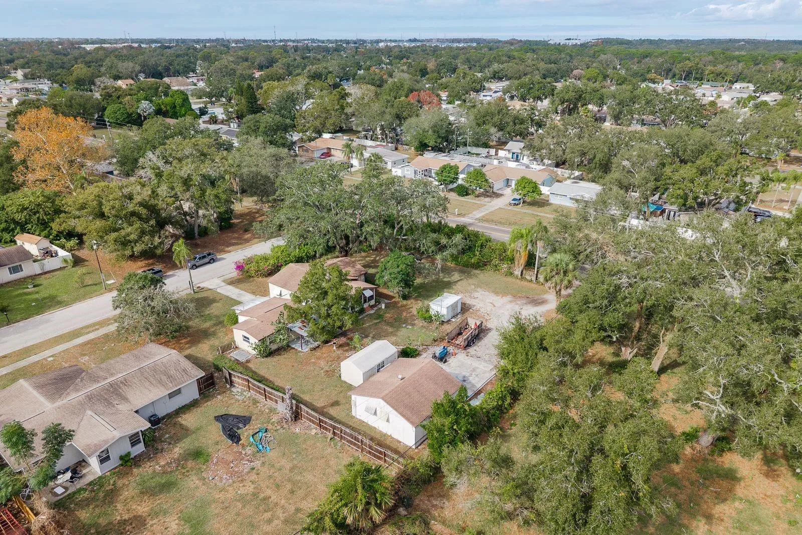 A Private Clearwater Compound with Endless Possibilities —With plenty of room and flexibility for RV/Boat Parking, Multi-Generational Living, Rental Options & Space for Every Hobby. Located int the heart of Pinellas County, Tucked away on a private ½-acre compound in Unincorporated Clearwater, this rare property delivers flexibility you simply can’t find in today’s market. Whether you’re looking for multi-generational living, guest quarters, rental potential, or serious space for boats, RVs, work trucks, or equipment—this property answers all of it. The main home features a comfortable 2-bed, 1-bath layout with an inviting living area and full kitchen—perfect as your primary residence. Attached to the main home is an efficiency-style studio that’s ideal as a guest suite, home office, or income-producing studio apartment. Across the property, you’ll find a detached 1-bed, 1-bath in-law suite with its own electric meter, offering privacy and independence for family, extended guests, or a tenant.Creative buyers will love the finished space, Located in the detached Garage complete with 1/2 bath. This dedicated art studio / she-shed—your own quiet retreat designed for painting, woodworking, crafting, or a home business. It can also easily be converted to additional indoor parking. Outside, the land is the real star: secure parking for boats, RVs, trailers, and contractor vehicles, plus multiple powered outbuildings including a 10×20 powered workshop, and an additional tool shed.