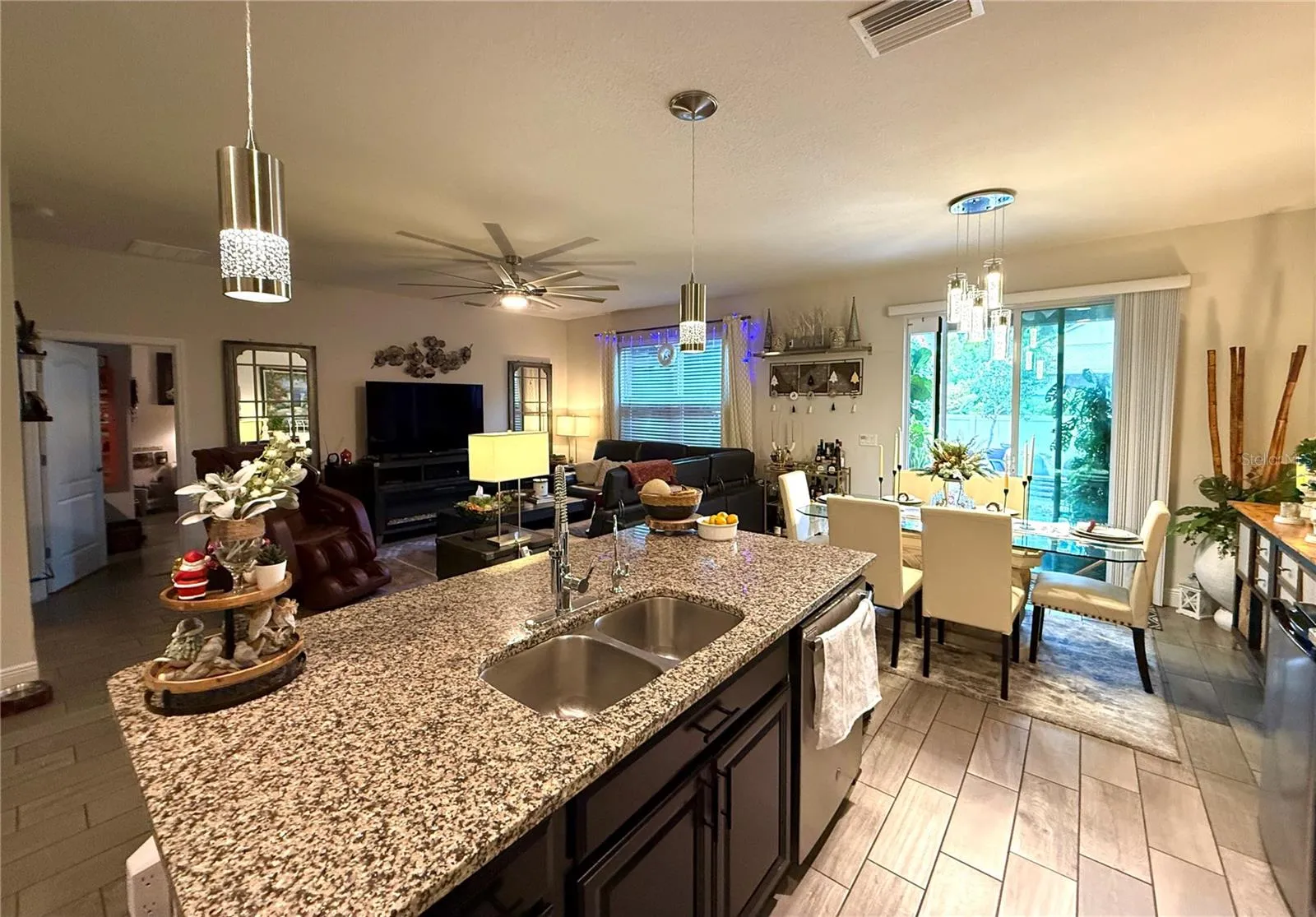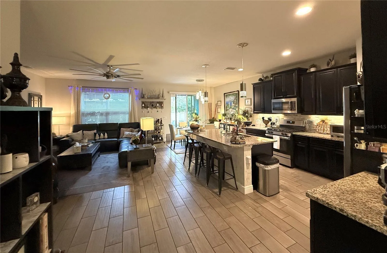 - Ceiling Fans(s), Open Floorplan, Walk-In Closet(s), Living Room/Dining Room Combo, Kitchen/Family Room Combo, Primary Bedroom Main Floor, Stone Counters