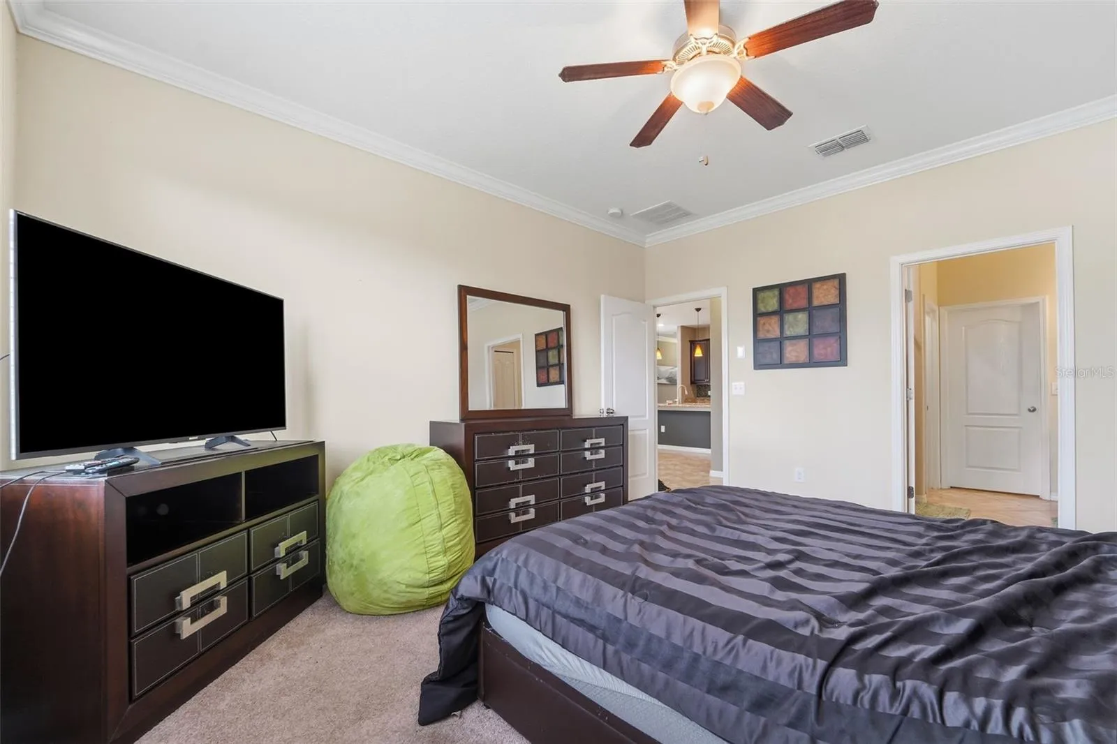 - Ceiling Fans(s), Crown Molding, Open Floorplan, Thermostat, Walk-In Closet(s), Living Room/Dining Room Combo, Primary Bedroom Main Floor, Stone Counters
