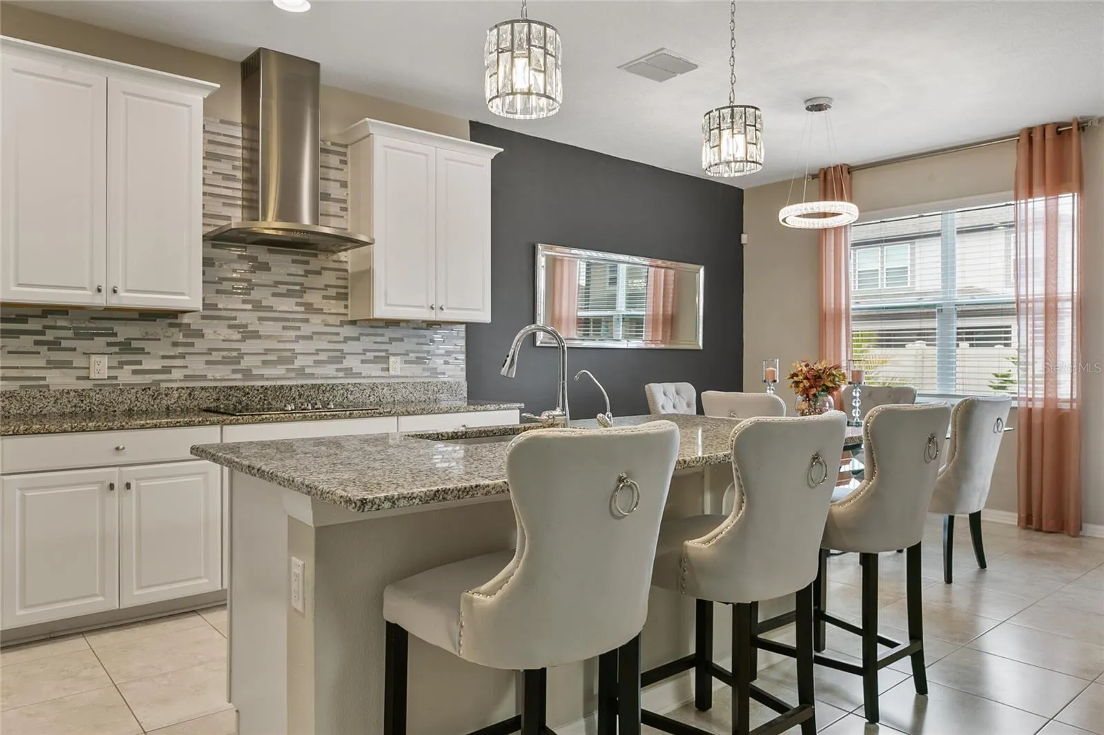 The heart of the home is its ultra-gourmet kitchen, featuring: Stylish decorative backsplash, large granite island perfect for meal prep and hosting, granite countertops throughout, stainless steel appliances, 42″ upper cabinets providing abundant storage.