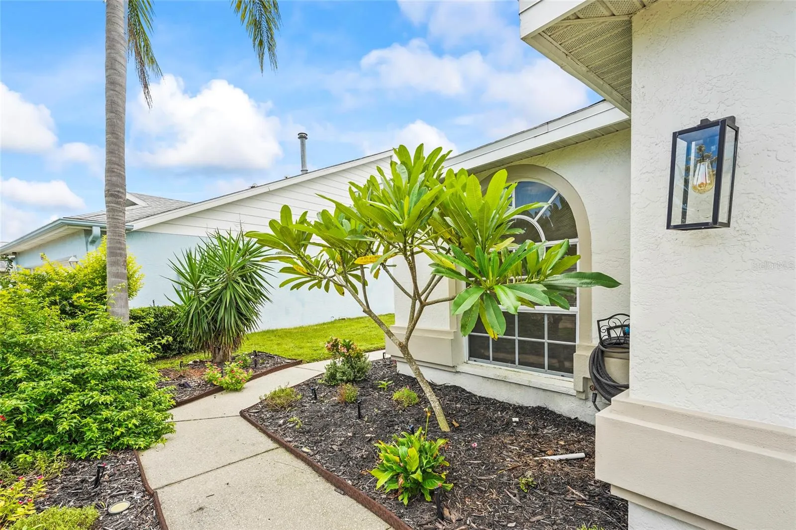 The screened lanai overlooks a serene pond and opens to a private backyard designed for relaxation. A new fence with backyard access, fresh landscaping, a new sprinkler system, and an updated lanai screen make outdoor living effortless.