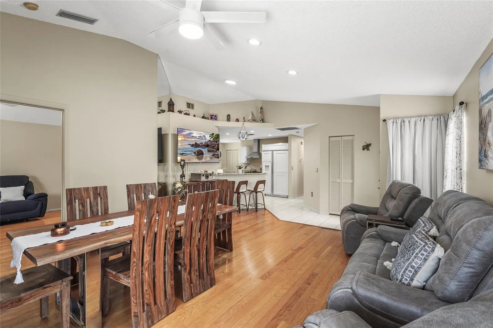 - Open Floorplan, Living Room/Dining Room Combo, Primary Bedroom Main Floor, Window Treatments, Vaulted Ceiling(s), Stone Counters