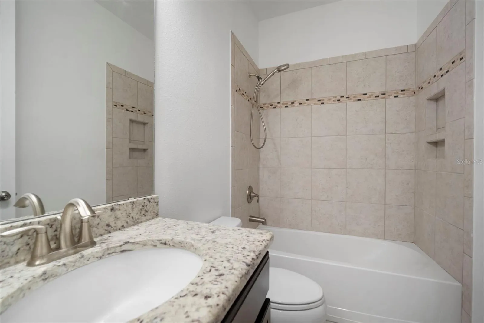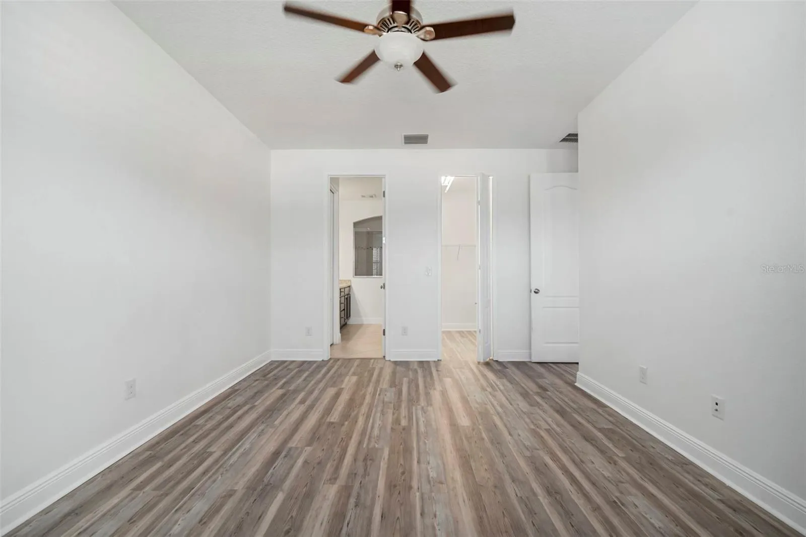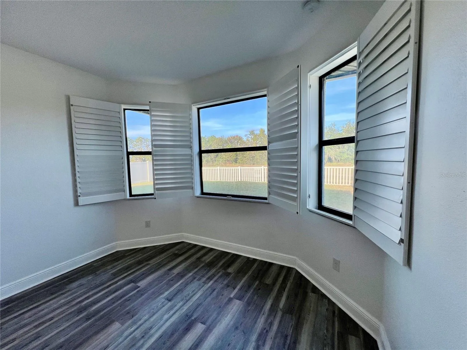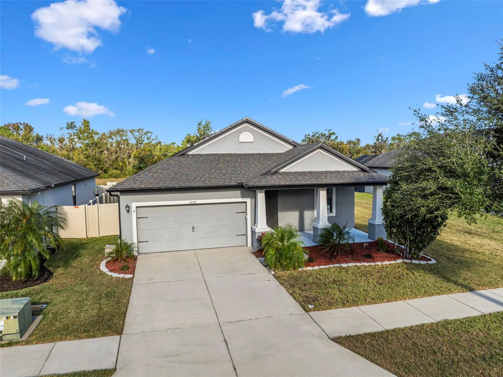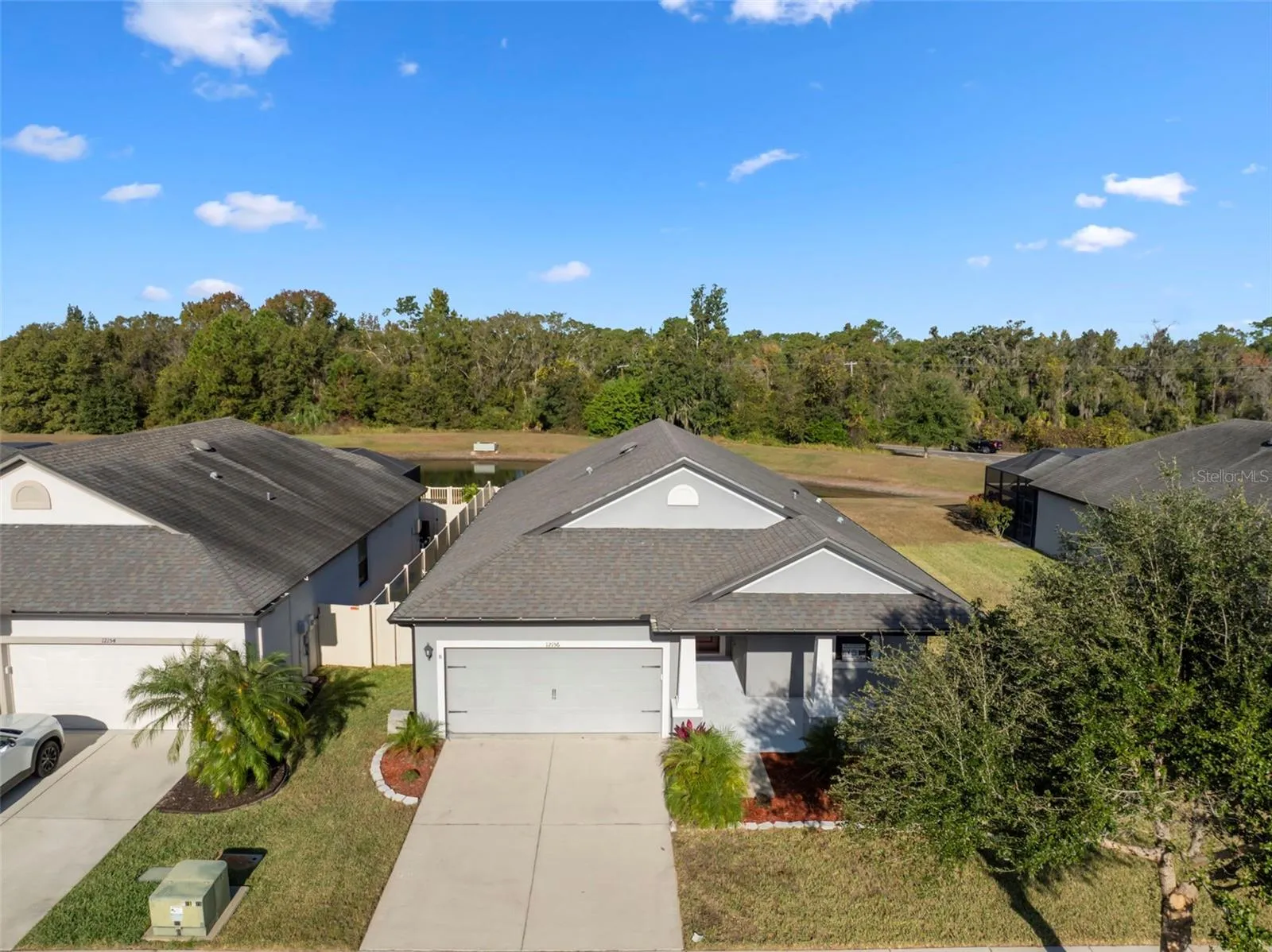 Welcome to your future home in Bell Creek Preserve! A gated community where comfort and convenience come together beautifully. This impeccably maintained William Ryan Homes build offers 3 bedrooms, 2 bathrooms, and an oversized covered front porch perfect for morning coffee or evening relaxation. Step inside to experience true NO-CARPET living with luxury vinyl and ceramic tile flooring throughout, offering easy maintenance and a sleek, updated look. Rounded corners with arched details elevate the interior’s architectural charm, while bay windows in both the kitchen and primary bedroom add abundant natural light and warmth. The kitchen and bathrooms sparkle with granite countertops, and plantation shutters enhance every window with timeless appeal. The spacious primary suite features a generous walk-in closet and a luxurious 6-ft walk-in shower. Love to entertain? You’ll appreciate the thoughtfully added power fixture in the floor of the living room. It is perfect for flexible furniture layouts; and the enhanced surround sound system, which not only fills the living room but is also wired to the garage and back porch. The amp is even included, making your setup turnkey for movie nights, hosting, or enjoying music while you work in the garage. Step outside to a fully fenced backyard overlooking a peaceful pond view—ideal for outdoor enjoyment, pets, and play. With plenty of room, your dream pool could easily become a reality! The home also features gutters installed for added protection and ceiling fans in all bedrooms, ensuring comfort year-round. The extended 2-car garage is a hobbyist’s delight, showcasing epoxy-coated flooring, plumbing ready for a future sink, and additional storage space above the garage. Additional upgrades include a whole-home water purification system (2021) and Spectrum high-speed internet & cable INCLUDED in the HOA… allowing you to move right in and enjoy modern living from day one. This home truly checks all the boxes: thoughtful features, energy-efficient perks, and a prime location within a sought-after gated community. Don’t miss your chance to make this Bell Creek Preserve beauty yours!